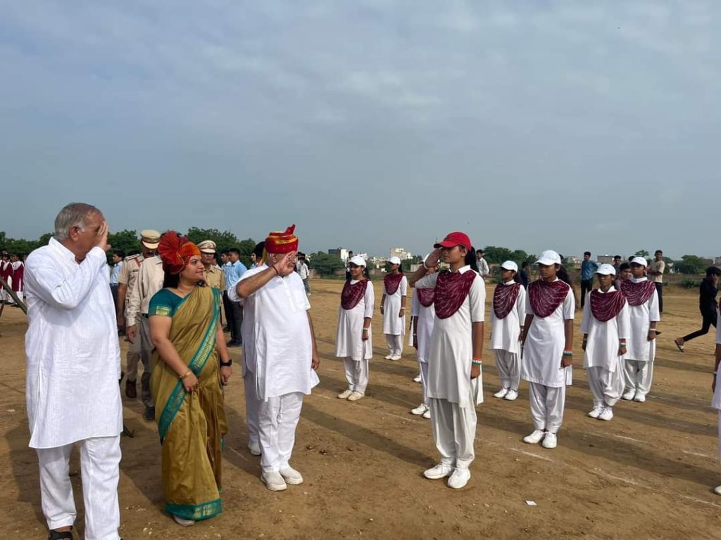 देश के 78वें स्वतंत्रतादिवस के शुभ अवसर पर श्रीडूंगरगढ़ के उपखण्ड स्तरीय स्वतंत्रता समारोह का आयोजन राजकीय रूपा देवी मोहता स्कूल के खेल मैदान में हुआ इस अवसर पर विधायक ताराचंद सारस्वत,उपखण्ड अधिकारी श्रीमती उमा मित्तल,नगरपालिका चेयरमैन श्री मानमल शर्मा,विश्वकर्मा कौशल विकास बोर्ड अध्यक्ष श्री रामगोपाल सुथार,सीओ श्री निकेत पारीक,सीआई श्री इन्द्र कुमार,अधिशाषी अधिकारी श्री अविनाश शर्मा,तहसीलदार श्री राज़वीर कड़वासरा ,सीबीओ श्री ओमप्रकाश प्रजापत्त, हाईस्कूल प्रिंसिपल श्री मनीष सैनी,जनप्रतिनिधि,कर्मचारीगण सहित समस्त विद्यालयों के अध्यापकगण,छात्र-छात्राओं एवं क्षेत्र के नागरिगण की उपस्थिति में तिरंगा फहराया गया । विभिन स्कूलों के बच्चो ने किया सांस्कृतिक कार्यक्रम, कार्यकर्म में बच्चो ने देशभग्ति गानों के साथ शानदार प्रस्तुतियां दी।इस शुभ अवसर पर विद्यार्थियों की ख़ूबसूरत परेड प्रदर्शन भी किया गया।