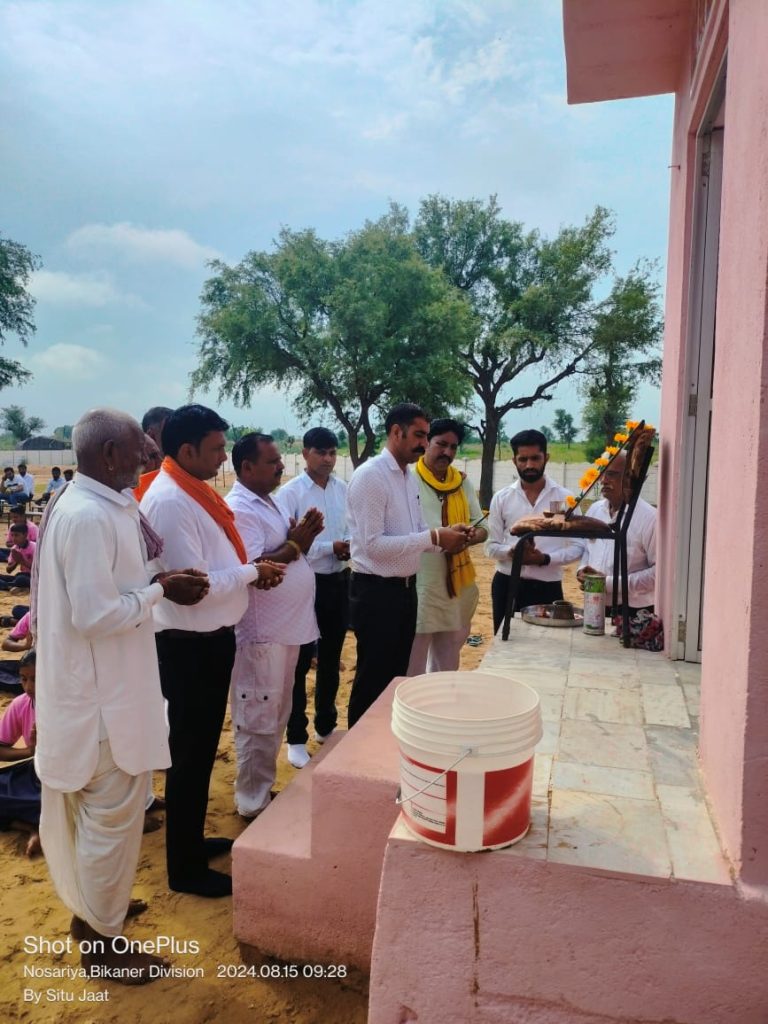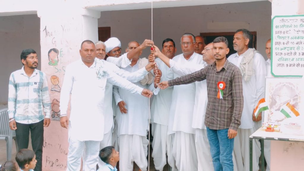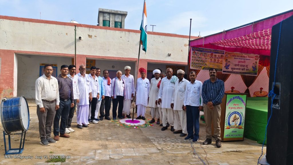 आज 78 वा स्वतंत्रता दिवस पर राजकीय विद्यालय में स्वतंत्रता दिवस बड़ी धूमधाम से मनाया। सरपंच ओमप्रकाश सारस्वत ने ध्वजारोहण किया। इस अवसर पर ग्राम के गणमान्य लोग और विद्यालय के स्टाफ मौजूद रहे। विद्यालय के प्रधानाध्यापक ने स्कूल में कुछ अवस्थाओं को लेकर सरपंच के सामने मांग रखी। पांच कमरों की मरम्मत करने, स्कूल में पीने के पानी , स्कूल में चार द्वारी बनाने , स्कूल में सीसी ब्लॉक चौक बनाने की मांग, सरपंच ओमप्रकाश सारस्वत ने सभी मांगों को मानते हुवे तुरंत कार्य चालू करवाने को कहा।