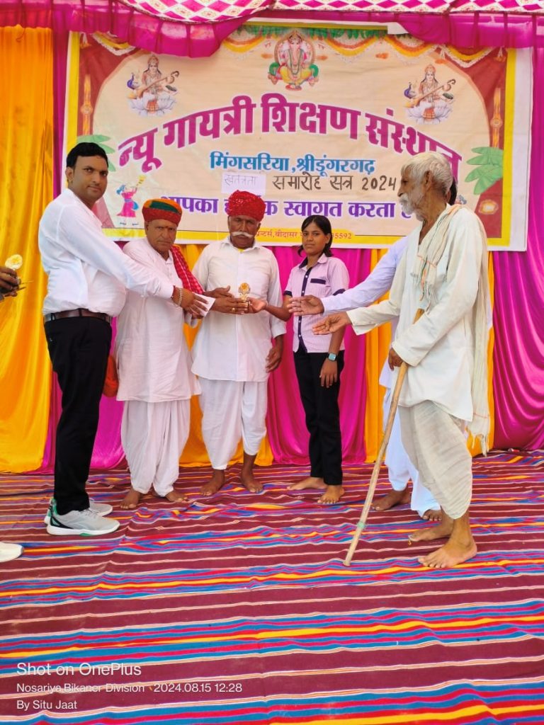 आज स्वतंत्रता दिवस के उपलक्ष में न्यू गयात्री शिक्षण संस्थान मिंगसरिया में धूमधाम से मनाया जिसमें मुख्य अतिथि ग्राम पंचायत धर्मास के सरपंच प्रतिनिधि पवन कुमार पारीक , ग्राम विकास अधिकार मूल सिंह , मिंगसरिया ग्राम पंचायत के सरपंच पूर्णाराम राणा ने झंडा रोहन किया व दीप प्रजलन कर प्रोग्राम की शुरुआत की खंगसिंह बिदावत, गोपाल सिंह , ताराचंद शर्मा रीडी, सोहनलाल स्वामी नोसरीया, राधाकिशन प्रजापत , पूनमचंद ज्याणी,निदेशक अशोक सिंह , व्यवस्थापक संदीप सिंह मिंगसरिया ने बच्चों को पिछले साल 90 से ऊपर आए उनको 11 ,11 हजार रूपया देकर सम्मानित किया।वरिष्ठ अध्यापक काननाथ सिद्ध ने मंच संचालन किया
