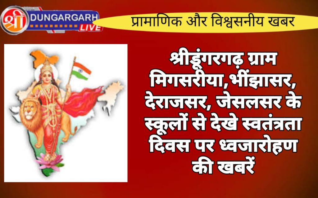 श्रीडूंगरगढ़ क्षेत्र में विभिन्न गांव के स्कूलों में मनाया स्वतंत्रता दिवस किया ध्जारोहण।