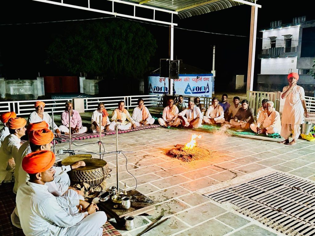 श्रीडूंगरगढ़. लिखमादेसर गांव के दिखणादा कुआ भगतसिंह चौक पर जम्मा जागरण का आयोजन हुआ। आमजन की खुशहाली के लिए जसनाथी संप्रदाय के अनुयायियों ने मंत्रोचारण के साथ ज्योत प्रज्वलित कर देव की आरती के बाद जसनाथजी, हसोजी, रुस्तमजी एवं सती दादी के शब्द वाणी की प्रस्तुतियां हुई। सिर पर भगवा साफा, बदन पर श्वेत परिधान पहने गायबी ‘गायक’ और कीर्तनकार जसनाथजी की प्रतिमा के समीप बैठे नगाड़ों की थाप पर शब्द मंगलाचरण व स्तवन की परंपरा की अपनी पहचान और अग्नि नृत्य की प्राचीन छाप को सुरक्षित रखते हुए साधना और आध्यात्मिक का नजारा पेश किया। इस दौरान धधकती आग पर नृत्य किया गया। उपस्थित रहे सहिनाथ, भंवरनाथ ज्याणी, हुकमाराम ज्याणी, पुर्ण नाथ महिया, प्रभु नाथ ज्याणी, मदननाथ गोदारा, मलुनाथ ज्याणी, हजारीनाथ, मुलनाथ मन्डा, पुरखाराम थाकण, अमिलाल, सांवरमल ज्याणी, मुनीराम झोरड़, मदनलाल, तोलाराम ,रामकुवार तिवाड़ी, बजरंग लाल जोशी ,मालाराम नाई ,भंवरा राम ,सेरा राम मेगवाल आदि