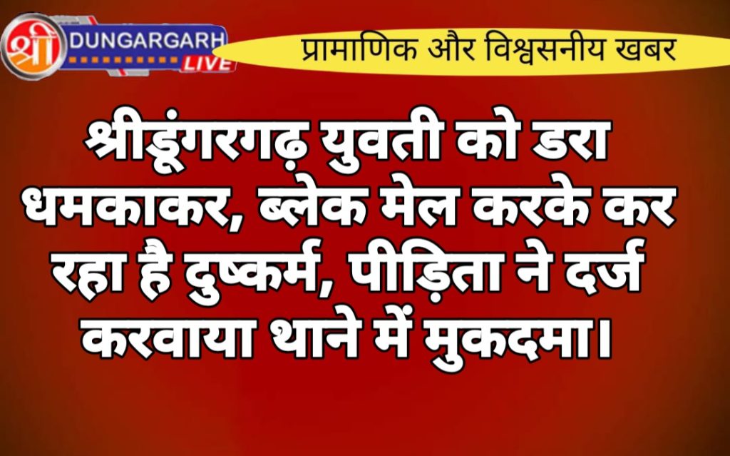 श्रीडूंगरगढ़ क्षेत्र में एक गांव में 21 वर्षीय युवती के साथ लगातार ब्लेक मेल डरा धमकाकर कर दुष्कर्म किया जा रहा था पीड़िता ने बताया की उसके साथ 2020 से लगातार आरोपी युवक दुष्कर्म कर रहा था । श्रीडूंगरगढ़ पुलिस थाने में आरोपी युवक मुकेश के खिलाफ मुकदमा दर्ज करवाया हैं जिसमें बताया कि युवक ने कई बार परिजनों के अनुपस्थिति में घर में प्रवेश करके डरा धमकाकर उसके साथ दुष्कर्म की वारदात को अंजाम दिया। वहीं वीडियो वायरल करने की धमकी देकर लगातार ब्लैकमेल भी कर रहा हैं और रूपए व घर से सोने चांदी के गहने भी मांग रहा है ऐसा नहीं करने पर मेरी व पिता की हत्या की भी धमकी देने लगा तो उसको गहने सुपर्द कर दिया । फिर से वह अपनी हरकतों से बाज नहीं आया और जबरन दुष्कर्म किया पुलिस ने पीड़िता की शिकायत पर पोक्सो एक्ट में मुकदमा दर्ज कर लिया है और मामले की जांच कार्यवाहक थाना अधिकारी सब इंस्पेक्टर धर्मपाल को सौंपी गई है। घटना के समय युवती नाबालिग थी इसलिए पोक्सो एक्ट की धाराएं जोड़ी गई है।