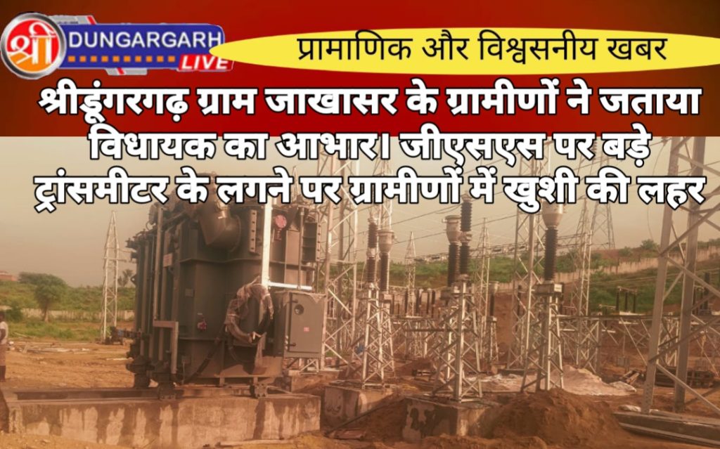 जाखासर के 132 केवी जीएसएस पर 20/25 MVA के बड़े ट्रांसमीटर लगने पर ग्रामीणों ने जताया विधायक ताराचंद सारस्वत का आभार ।इससे रीड़ी,उपनी के 132 केवी को राहत मिलेगी इसी के साथ जाखासर नया,पुराना, केऊ, बापेउ के 33 केवी सहित कई जीएसएस के उपभोक्ताओं को बड़ी राहत मिलेगी ।विधायक ताराचंद सारस्वत किसानो के बिजली समस्या,जीएसएस और ट्रांसफार्मर जैसे समस्याओं का तुरंत समाधान कर रहे है।ग्रामीणों ने विधायक ताराचंद सारस्वत का आभार एवं धन्यवाद जताया ।