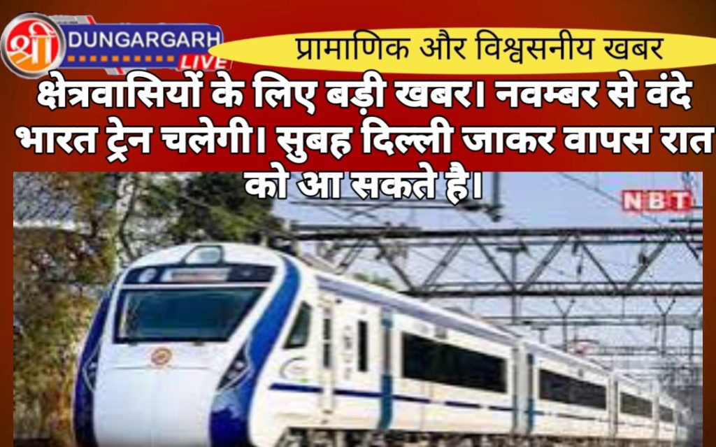 श्रीडूंगरगढ़ से दिल्ली के लिए अब ट्रेनों की कमी नहीं है। तीन ट्रेनें सीधे दिल्ली जाती है। अवध-आसाम भी दिल्ली होकर ही जाती है। नवंबर से दिल्ली के लिए वंदे भारत ट्रेन भी चलने की संभावना है।वंदे भारत का शिड्यूल कुछ ऐसा रहेगा कि बीकानेर से कोई सुबह जाकर रात तक बीकानेर लौटा जा सकता है। इस विषय में केन्द्रीय कानून मंत्री अर्जुनराम मेघवाल और रेल मंत्री अश्विनी वैष्णव के बीच बातचीत हुई है। इसके आधार पर माना जा रहा कि वंदे भारत नवंबर में सेकंड स्लॉट में चलनी शुरू होगी।
