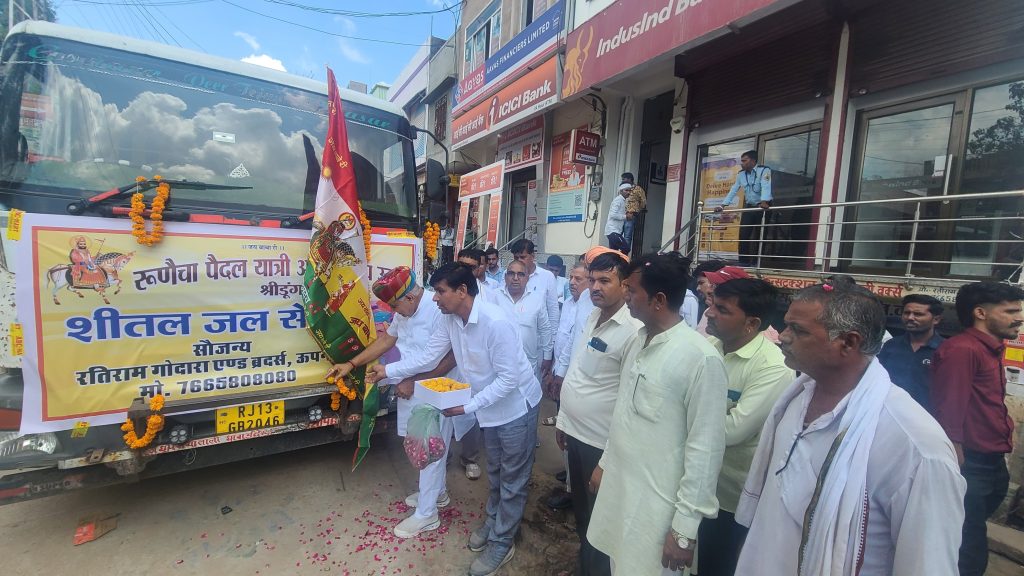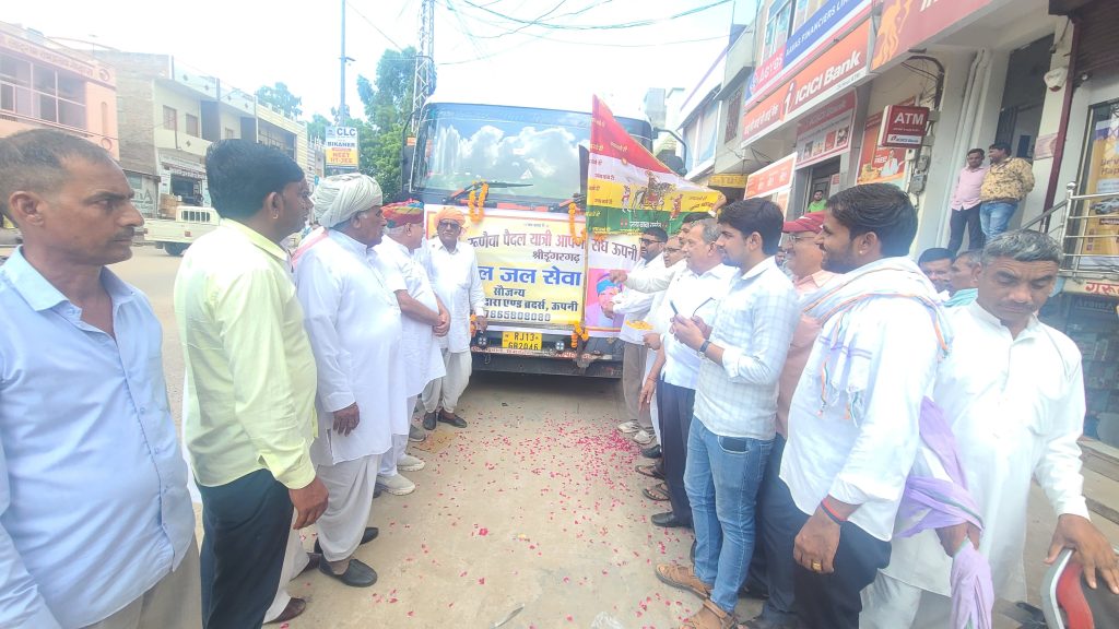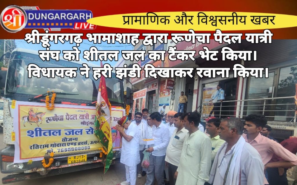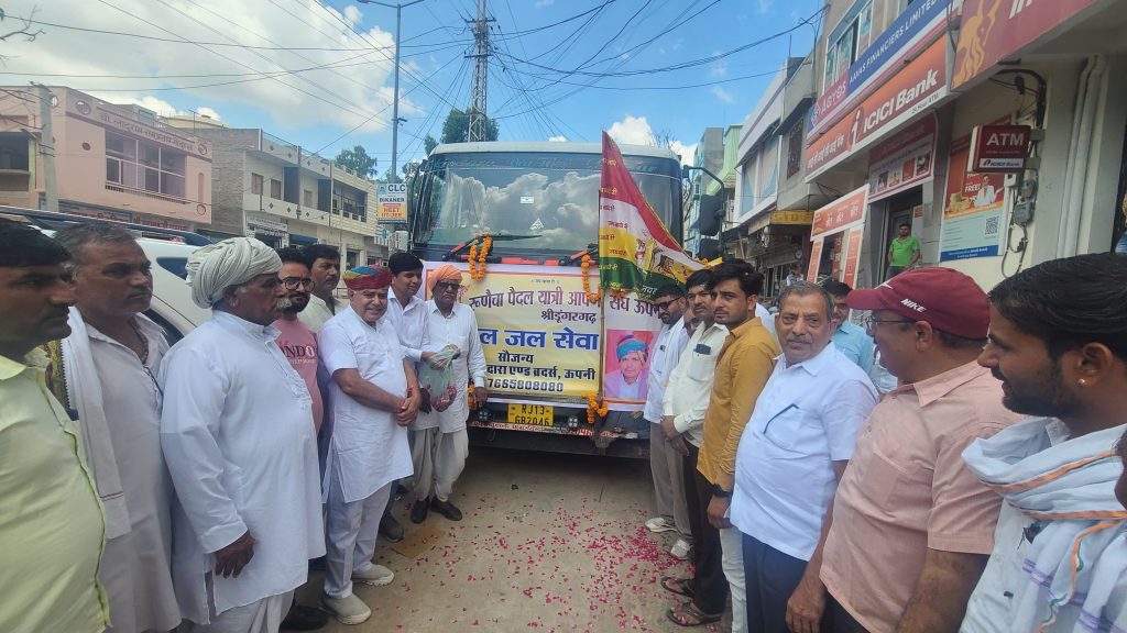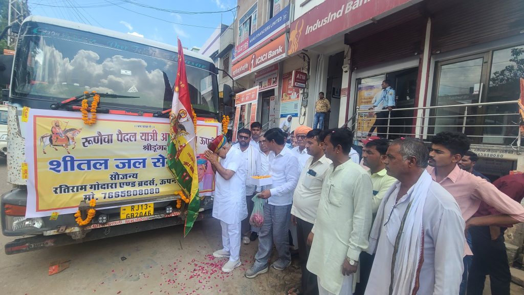 श्री विश्वकर्मा मंदिर के पास रतिराम गोदारा एंड ब्रदर्स ऊपनी द्वारा रूणैचा पैदल यात्रियों के लिए रूणेचा पैदल यात्री संघ ऊपनी को शीतल जल सेवा का टैंकर भेंट किया जिसका विधायक ताराचंद सारस्वत ने हरी झंडी दिखाकर रवाना करवाया। इस अवसर पर विधायक ताराचंद सारस्वत ने कहा कि जल सेवा से बढ़कर और कुछ नही हैं जल है तो जीवन है। विधायक सारस्वत ने संघ के यात्रियों को जय बाबेरी के उदघोष के साथ संघ को रवाना करवाया। इस दौरान तोलाराम तावनियां,शहर महामंत्री श्री महेश राजोतिया,सुरेंद्र चुरा रूपाराम, मोतीनाथ,भंवरलाल, लेखनाथ,पीथाराम, काशीनाथ,मुखराम,परमेश्वर हरडू,पदमाराम,श्रीनंदु राजपुरोहित,आईदान पारीक,मनीष गिरी सहित भाजपा कार्यकर्ता एवं वरिष्ठ नागरिक उपस्थित रहे।