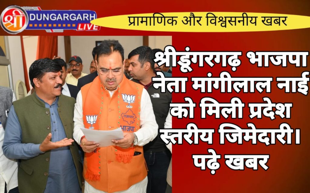 श्रीडूंगरगढ़ से युवा चहरा मांगी लाल नाई को मिली भाजपा प्रदेश मॉनिटरिंग टोली में भरतपुर संभाग की जिमेदारी।2 सितंबर को शुरू हो रहे भाजपा सदस्यता अभियान के लिए श्रीडूंगरगढ़ के मांगीलाल नाई को भाजपा प्रदेश मॉनिटरिंग टोली में भरतपुर संभाग की जिम्मेदारी दी गई है।उक्त नियुक्ति भाजपा प्रदेश उपाध्यक्ष एवं सदस्यता अभियान के प्रदेश सह संयोजक श्री मोतीलाल मीणा द्वारा दी गई है।मांगीलाल नाई को जिम्मेदारी मिलने पर कार्यकर्ताओं व समर्थकों ने उनको शोसल मीडिया व व्यक्तिगत कॉल करके बधाई दे रहे है।मांगीलाल नाई वर्तमान में भाजपा के विशेष संपर्क प्रकोष्ठ में प्रदेश सह संयोजक का कार्य भी कर रहे है।