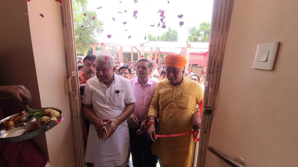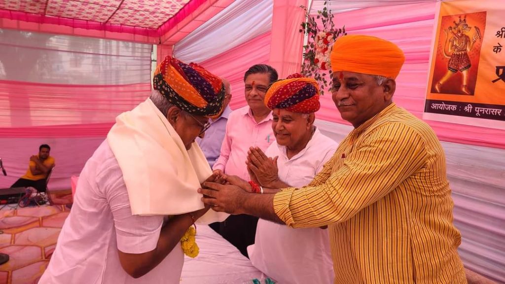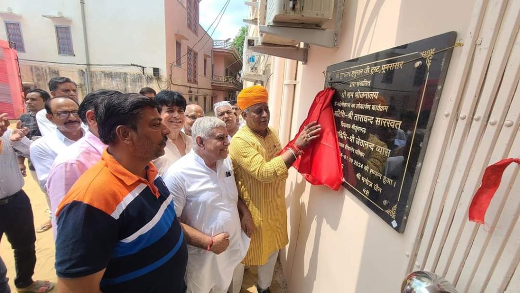 श्रीडूंगरगढ़ पूनरासर बाला मंदिर आने वाले श्रद्धालुओं एवं आमजन के लिए श्री पूनरासर हनुमान जी ट्रस्ट कोलकता (पूनरासर) द्वारा संचालित श्रीराम प्रसाद शाला (भोजनालय) के नवीनीकरण का लोकार्पण श्रींगारगढ़ विधायक ताराचंद सारस्वत व बीकानेर पश्चिम विधायक श्री जेठानंद व्यास ने किया। इस अवसर पर मंच पर विराजमान मुख्य अतिथि श्रीडूंगरगढ़ विधायक ताराचंद सारस्वत एवं विशिष्ठ अतिथि बीकानेर पश्चिम विधायक जेठानंद व्यास,श्री पूनरासर हनुमान जी ट्रस्ट अध्यक्ष श्री भिखमचंद जी पुगलिया,मंत्री मनोज कुमार जैन,सुमेरमल सुराणा,ट्रस्ट के निवर्तमान अध्यक्ष सुरेंद्र बच्छावत मंच पर विराजमान रहे। इस दौरान ट्रस्ट के संपत पारीक एवं श्री छः न्याति ब्राह्मण महासंघ बीकानेर अध्यक्ष पराशर नारायण शर्मा ने मंचासिन अतिथियों का साफा शॉल ओढ़ाकर स्वागत किया। इस अवसर पर विधायक ताराचंद सारस्वत ने कहा कि पूनरासर गांव में बाला जी महाराज की कृपा से श्री पूनरासर हनुमानजी ट्रस्ट ने श्रीराम प्रसाद शाला इस यंहा आने वाले श्रद्धालुओं को लाभ मिलेगा इस पुनीत कार्य के लिए ट्रस्ट के समस्त नागरिकों का आभार व्यक्त किया। इस अवसर पर बजरंग लाल शर्मा,ओंकारनाथ,जगदीश पारीक,मोहननाथ,डालूराम सिंवर,पूर्णनाथ,बिरबलनाथ,बजरंगबली जनकल्याण सेवा समिति अध्यक्ष शंकर नाथ,हेमनाथ जाखड़,भाजपा जिला उपाध्यक्ष शिव स्वामी, वरिष्ठ पत्रकार तोलाराम मारू,शहर मंडल अध्यक्ष महावीर प्रजापत,शहर महामंत्री महेश राजोतिया,सुरेंद्र चुरा,मूलचंद इंदौरिया,पार्षद जगदीश गुर्जर,किशोर आचार्य,प्रदीप उपाध्याय,विधायक के निजी सचिव रजनीकांत सारस्वत,ललित मारू,सहित समस्त ग्रामवासी एवं बड़ी संख्या में गणमान्य नागरिक उपस्थित रहे।