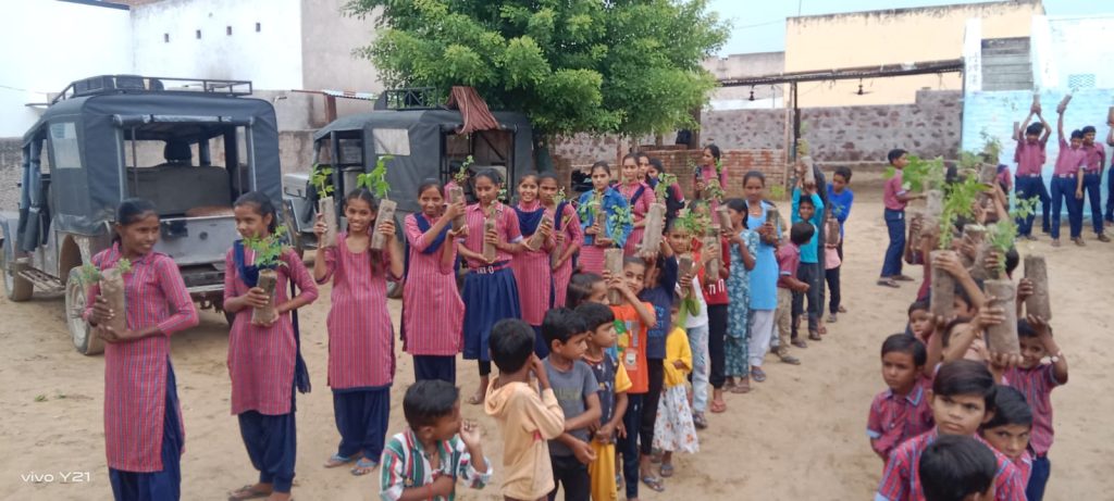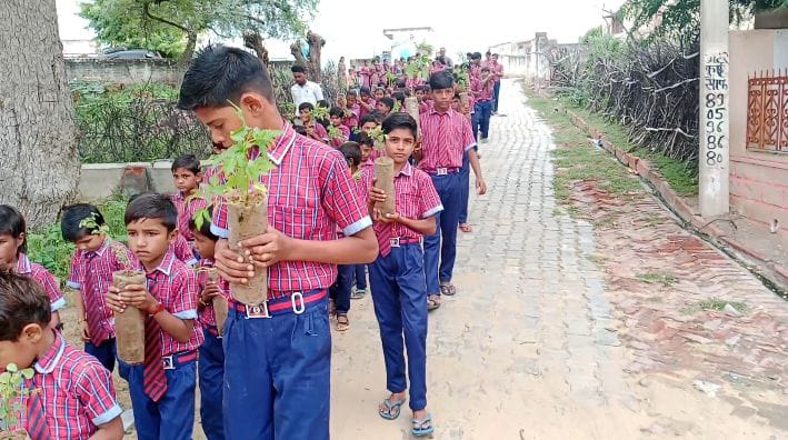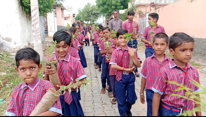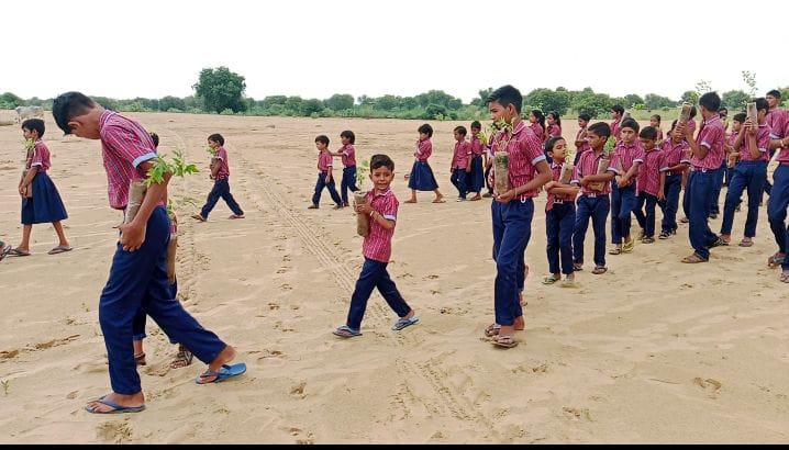 महरिया शिक्षण संस्थान धनेरू में आज विद्यालय के निदेशक आसु राम मेघवाल की अगुवाई पर समस्त विद्यालय के छात्र-छात्राओं,अध्यापकों द्वारा छायादार व फलदार पेड़ लगाए गए। तथा सभी छात्र-छात्राओं ने गांव में रैली निकालकर नारे लगाए। वृक्षों को बचाने का संकल्प लिया गया ,विद्यालय के निदेशक ने बताया कि ग्रामीण क्षेत्र में हरियाली की खासी कमी है इसको दूर करने के लिए प्रत्येक आदमी अपनी भागीदारी निभावे। इस गांव में हरित गांव का माहौल बनेगा,जिसमें प्रकृति संरक्षण में योगदान दिया जाएगा सभी छात्र-छात्राओं व अध्यापक रामचंद्र कालवा,विजयपाल खमीवाद,रमेश खामिवाद, भजनलाल मेहरडा, सुरेंद्र खमीवाद,मुस्कान पारीक, भावना पारीक, रामेश्वर लाल ,मूलाराम तथा अन्य युवा साथियों ने मिलकर के वृक्षारोपण करवा कर पेड़ पौधों को बचाने का संकल्प लिया।