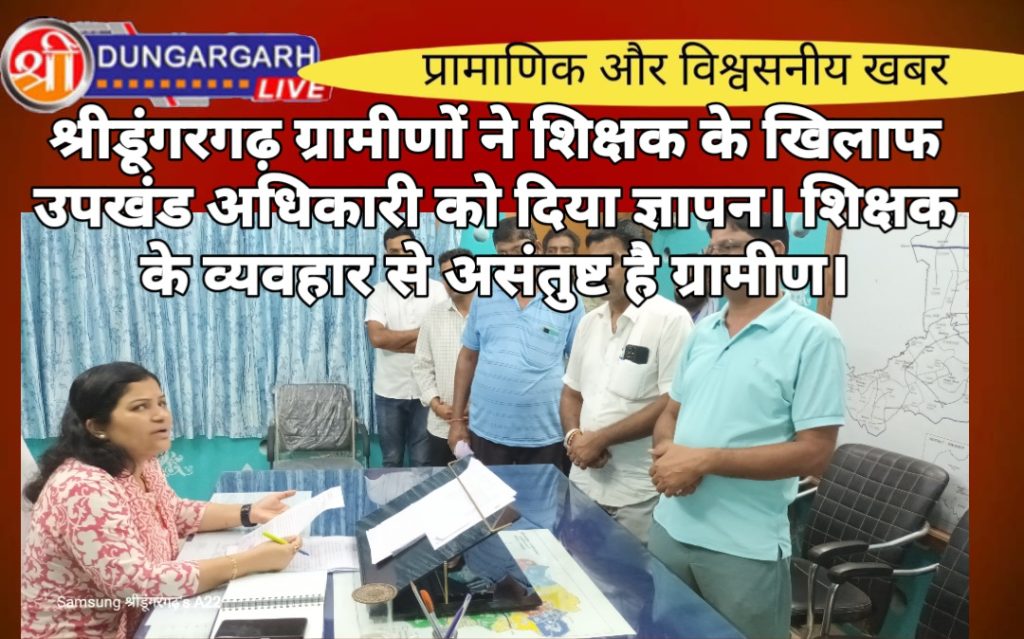 श्रीडूंगरगढ़ क्षेत्र के ग्राम रेवाड़ा के ग्रामीणों ने आज उपखंड अधिकारी को ज्ञापन दिया।ग्रामीणों ने बताया की हमारे गांव में स्कूल राजकीय उच्च माध्यमिक विद्यालय रेवाड़ा में शिक्षक रतिनाथ सिद्ध कार्यरत है ये शिक्षक बहुत इगो रखता है ग्रामीणों ओर स्कूल विधार्थियों के परिजनों के साथ व्यवहार अच्छा नहीं रखता है।बच्चो के साथ क्रूर व्यवहार रखता है जब चाहे डाट फटकार लगाता है जब चाहे स्कूल आता है जाता। ग्रामीणों को धमकी देता है की मेरी पहुंच ऊपर मंत्री तक है। बच्चे स्कूल जाने से मना कर रहे है शिक्षक के व्यवहार के कारण।परिजन कोई भी विद्यालय जाता है तो उसको यही बोलता है की आप से जो होता है वो कर लो।इस तरह की शिकायत लेकर ग्रामीण उपखंड अधिकारी के पास आज आए। ग्रामीणों ने बताया की इससे पूर्व भी हमने शिक्षा विभाग के अधिकारियों को समय समय पर ज्ञापन दिया लेकिन कोई कार्यवाई नही हुई। ग्रामीणों की मांग है कि शिक्षक को कही अन्य विद्यालय भेजे या एपीओ किया जावे। ग्रामीणों में हनुमानसिंह, गणेशसिंह,विजयसिंह, धर्मविरसिंह, सुगनसिंह, देवीसिंह,जेठूसिंह, दीनेशसिंह,कानसिंह, समुंदरसिंह, मोहनसिंह,रामकुमारसिंह आदि ग्रामीण रहे।