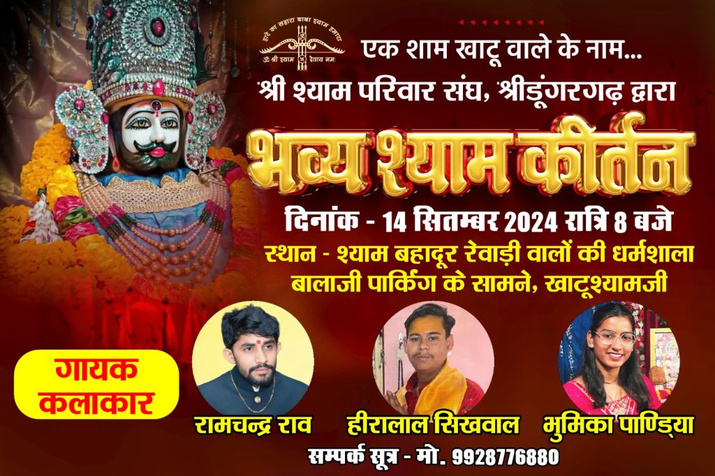 श्रीडूंगरगढ़ से खाटू श्याम संघ होगा रवाना। श्री श्याम परिवार संघ कर रहे है तैयारिया।
