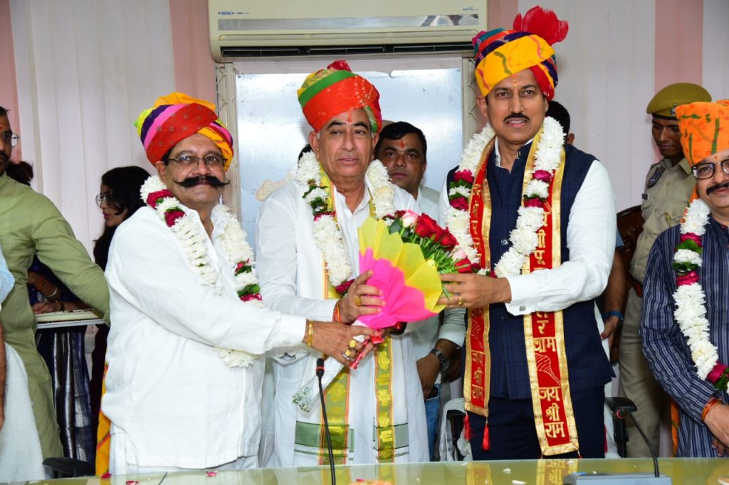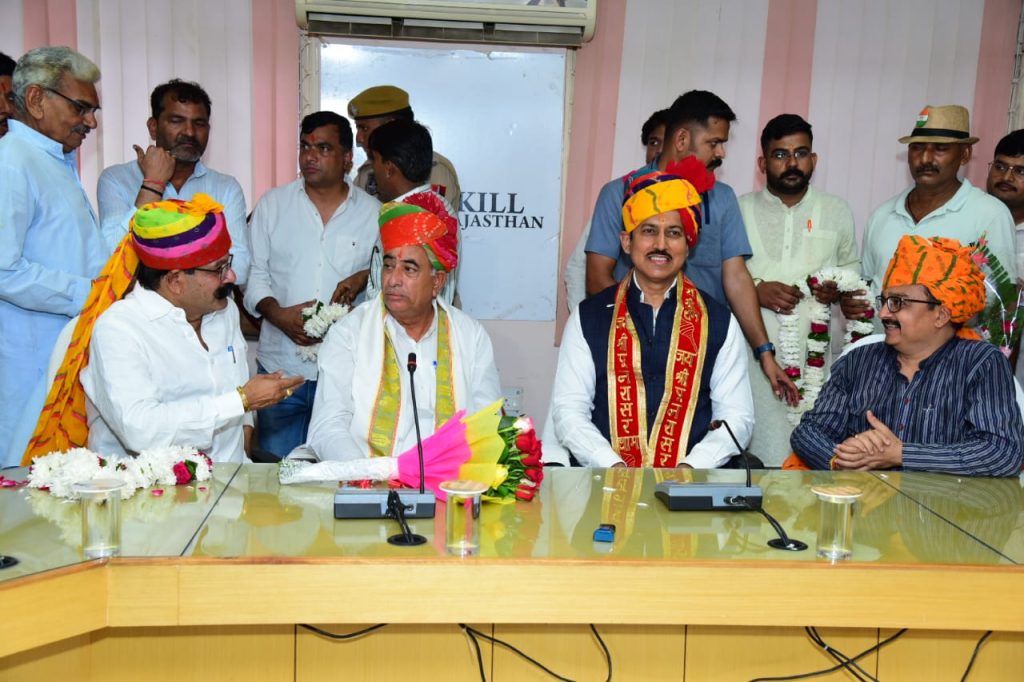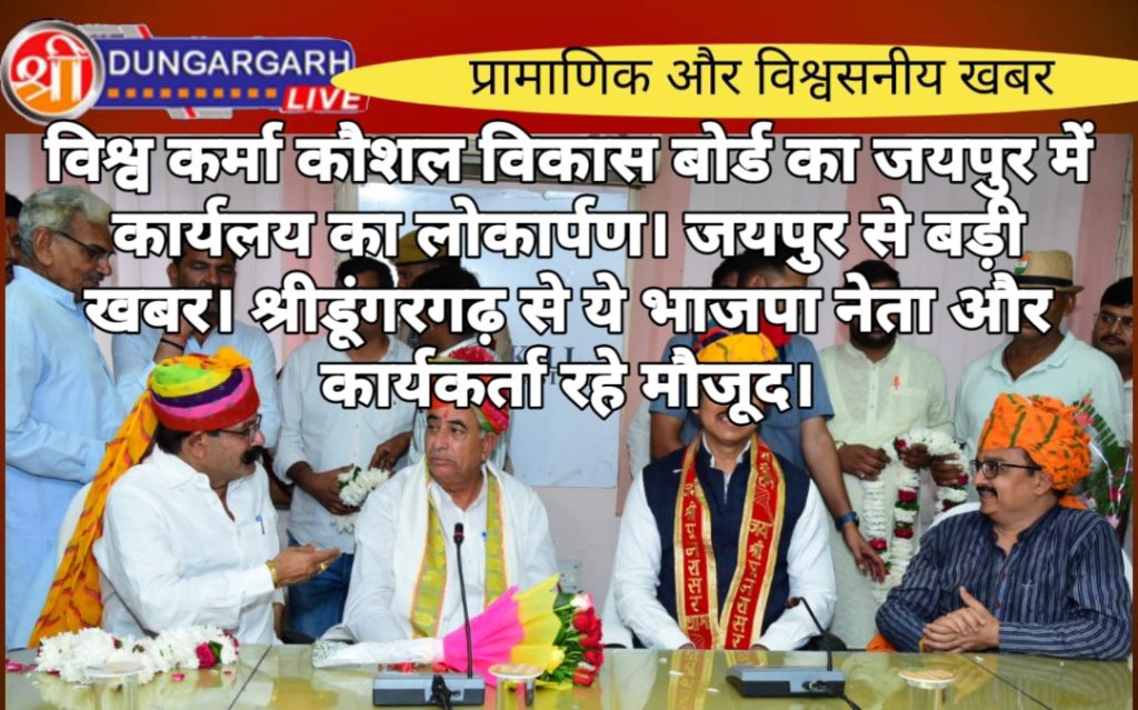जयपुर से बड़ी खबर आज श्री विश्वकर्मा कौशल विकास बोर्ड के अध्यक्ष राज्य मंत्री राम गोपाल सुथार ने पद भार ग्रहण किया जिस में गरिमा मय उपस्थिति रही केबिनेट मंत्री कर्नल राज्यवर्धन सिंह राठौड़ । राठौड़ ने इस दौरान समाज के पिछड़े वर्गों के हित में कार्य करने और उन्हें मुख्य धारा से जोड़कर विकास की राह पर आगे बढ़ाने का आह्वान किया। बोर्ड के अध्यक्ष रामगोपाल सुथार ने पूर्ण निष्ठा के साथ विश्वकर्मा बोर्ड के दायित्व निर्वहन करने व कर्तव्यनिष्ठा के साथ बोर्ड कार्य करने की बात कही। उन्होंने राज्य व केंद्र सरकार के निर्देशन में विकास के नए अध्याय लिखे जाने का विश्वास जताया। सुथार ने सभी का स्वागत करते हुए आभार जताया। इस दौरान अनेक वरिष्ठ नागरिक व पार्टी पदाधिकारी, कौशल नियोजन एवं उद्यमिता विभाग के अधिकारी मौजूद रहें।श्री यादें माटी कला बोर्ड अध्यक्ष श्री प्रहलाद टाक,प्रदेश मंत्री अजीत मांडन,पूर्व प्रदेश उपाध्यक्ष श्री माधोराम जी चौधरी। श्रीडूंगरगढ़ चेयरमैन मानमल शर्मा, किशनमोर्चा जिलाध्यक्ष भंवर लाल जांगिड़,रामेश्वर पारीक,मांगीलाल नाई,शिव प्रसाद तावणीयां,नवरतन राजपुरोहित,गोपाल व्यास,कन्हैया स्वामी,नारायण पंवार,हनुमान व्यास,असगर ठेकेदार,श्याम पुरोहित,नंदू ,कहेया गुरावा,छगन दर्जी,शिव दर्जी,बनवारी नाई,चेनरूप जाखड़,अमर चन्द, भरत सुथार, इशू जैन,भवानी सैनी,दीपक सारस्वत,पूनम चन्द सुथार अधिकारी और कर्मचारी उपस्थित रहे