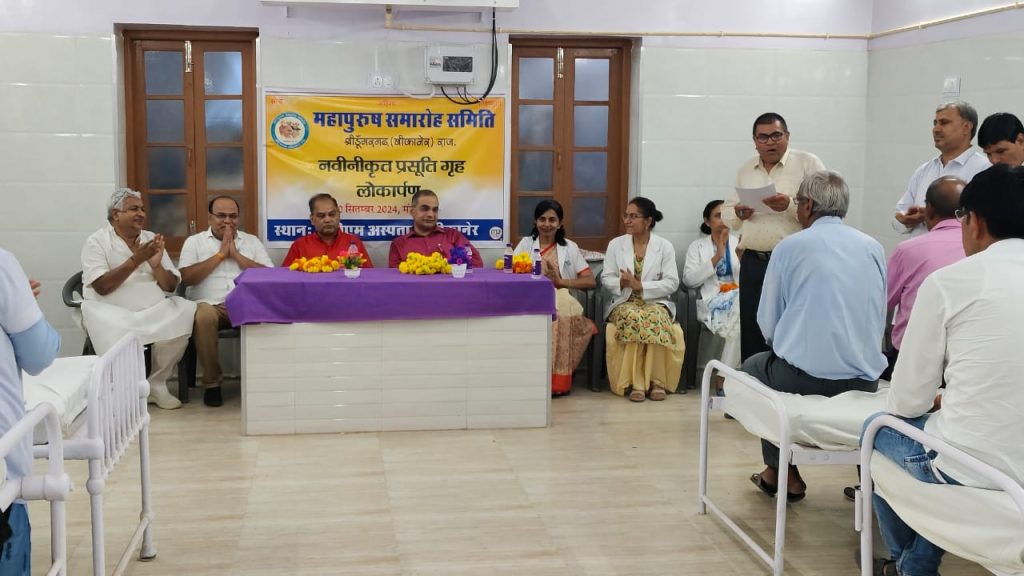 महापुरुष समारोह समिति श्री डूंगरगढ़ द्वारा 10 सितम्बर मंगलवार को बीकानेर के पीबीएम हॉस्पिटल बीकानेर के नवीनीकृत प्रसूति गृह का लोकार्पण समारोह आयोजित किया गया । सामाजिक कार्यकर्ता रमेश बिहाणी की अध्यक्षता में आयोजित लोकार्पण समारोह के मुख्य अतिथि डॉ नोरंग महावर अतिरिक्त प्राचार्य सरदार पटेल मेडिकल कॉलेज बीकानेर, विशिष्ट अतिथि डॉ स्वाति फ्लोदिया, भवानी शंकर जोशी उप अधीक्षक पी बी एम, डॉ पारुल प्रकाश, डॉ कमलेश, डॉ गौरीशंकर जोशी , मुख्यवक्ता डॉ पी के सैनी अधीक्षक पी बी एम एवं संस्था अध्यक्ष श्रीगोस्थ रहे । मंचस्थ अतिथियों द्वारा नवीनीकृत प्रसूति गृह का विधिवत लोकार्पण किया गया । इस अवसर पर डॉ. नोरंग महावर ने समिति द्वारा दिए जा रहे सतत सहयोग के लिए आभार प्रकट करते हुए कहा कि लेबर रूम के नवीनीकरण से यहां आने वाली महिलाओं को बेहतर सुविधाएं मिलेंगी और उनकी प्रसव प्रक्रिया सुगम होगी। यह कदम मातृ एवं शिशु स्वास्थ्य में सुधार लाने की दिशा में एक महत्वपूर्ण पहल है।” संस्थाध्यक्ष श्रीगोपाल राठी ने दानदाताओं एवं कार्य में सहयोगी लोगो का आभार प्रकट करते हुए कहा कि पी बी एम हॉस्पिटल एक बड़ा तीर्थ स्थल है , इसमें सहयोग करने वाले दानदाता भाग्यशाली है । राठी ने बताया कि संस्था द्वारा माताओं, बहनों एवं शिशुओं की सुविधा के लिए दानदाताओं के सहयोग से लेबर रूम के नवीनीकृत के साथ आधुनिक उपकरण लगाए गए है जिससे बेहतर सुविधा हो । समाजसेवी तुलसीराम चोरड़िया ने कहा कि देश के बड़े अस्पतालों में दर्ज पीबीएम लाखों लोगों के आस्था का केन्द्र है । कार्यक्रम के मुख्यवक्ता डॉ. पी के सैनी ने महापुरुष समारोह समिति एवं भामाशाहो के इस प्रयास की सराहना करते हुए कहा, “इस नवीनीकरण से अस्पताल की सेवाओं में सुधार होगा । जनोपयोगी सेवाओं में सुधार हेतु समाज के सभी वर्गो की भागीदारी अपेक्षित है । डॉ. स्वाति फलोदिया ने कहा, “लेबर रूम के नवीनीकरण से न केवल आधुनिक उपकरणों और सुविधाओं का विस्तार हुआ है बल्कि इससे हमारी टीम को भी प्रेरणा मिली है कि हम और भी समर्पित होकर मरीजों की सेवा करें । संस्था का यह प्रयास प्रसूताओं की सुरक्षा और स्वास्थ्य को सुनिश्चित करने की दिशा में एक बड़ा कदम है । संस्था के मंत्री सुशील सेरड़िया ने दानदाताओं एवं उपस्थित सभी गणमान्य लोगों का आभार प्रकट किया । इस अवसर पर बजरंगलाल सेवग, मांगीलाल राठी, सत्यदीप सेवग, रामेश्वरनाथ अभयसिहपूरा, बीरबल जाखड़ रिड़ी, नारायण झंवर नापासर, तिलोक चंद गहलोत बीकानेर, निर्मल पुगलिया, प्रेम बुच्चा, ललित बाहेती, जगदीश भामू, आर्किटेक अरुंधति, झूमर गहलोत, अशोक दर्जी, सुरेश भादानी सहित पीबीएम हॉस्पिटल के डॉक्टर एवं पैरामेडिकल स्टाफ उपस्थित रहे।