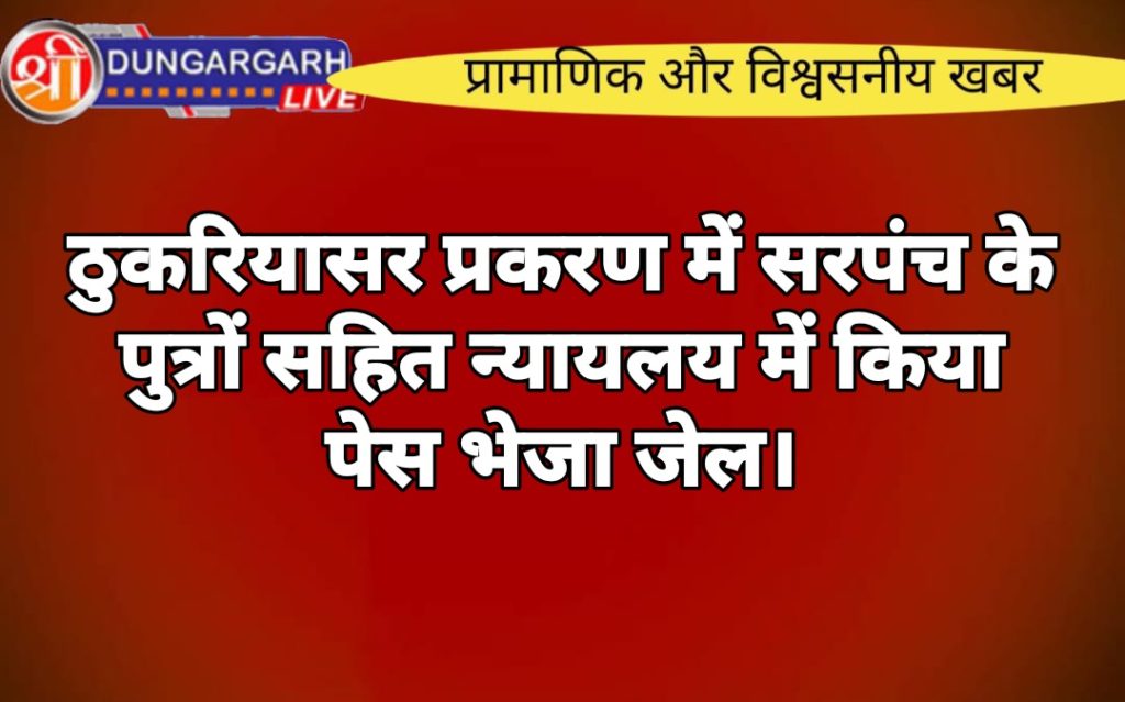 श्रीडूंगरगढ़ के नजदीकी गांव ठुकरियासर के सरपंच अमराराम गांधी और उनके पुत्र बुधाराम को बिजली विभाग के कनिष्ठ अभियंता के साथ हुई मारपीट प्रकरण में तथा ठुकरियासर ग्राम पंचायत में लगी अंबेडकर प्रतिमा तोड़ने के आरोपियों हनुमान एवं नरसाराम को आज न्यायालय में पेश किया गया। जहां चारों को बीकानेर जेल भेजने के निर्देश दिए गए। बिजली विभाग के कनिष्ठ अभियंता नारायण शुक्ला के साथ हुई मारपीट के आरोपी सरपंच अमराराम गांधी व उनके पुत्र बुधराम तथा ठुकरियासर ग्राम पंचायत भवन में लगी अंबेडकर प्रतिमा को खंडित करने के आरोपी हनुमान व नरसाराम को आज श्रीडूंगरगढ़ न्यायालय में पेश किया गया। जहां न्यायालय ने सभी आरोपियों की जमानत रद्द करते हुए उन्हें जेल भेजने के निर्देश दिए।