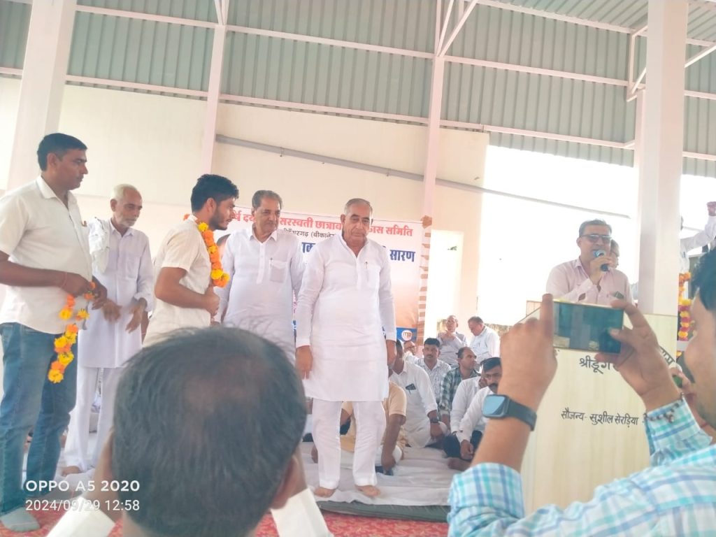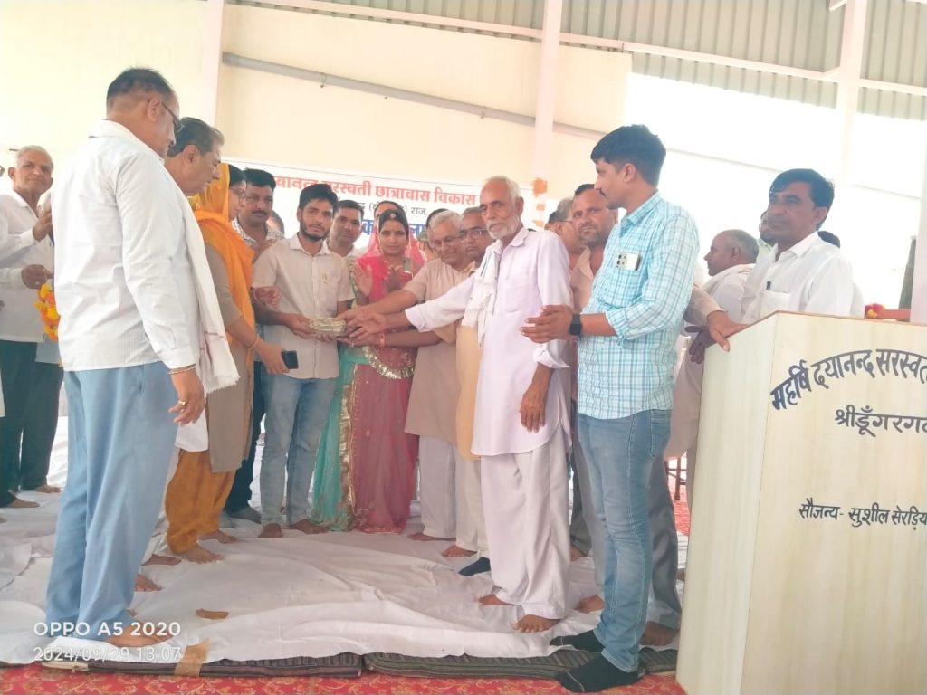 महर्षि दयानंद सरस्वती छात्रावास श्रीडूंगरगढ़ में लोकनायक स्व लूणाराम जी सारण की पुण्यतिथि के अवसर पर रविवार को आयोजित हुई श्रंद्धाजलि सभा एवं प्रतिभा सम्मान समारोह में निर्माणाधीन बालिका छात्रावास में दानदाताओं द्वारा अपने पूर्वजों की स्मृति में कमरे निर्माण की घोषणा की गई-