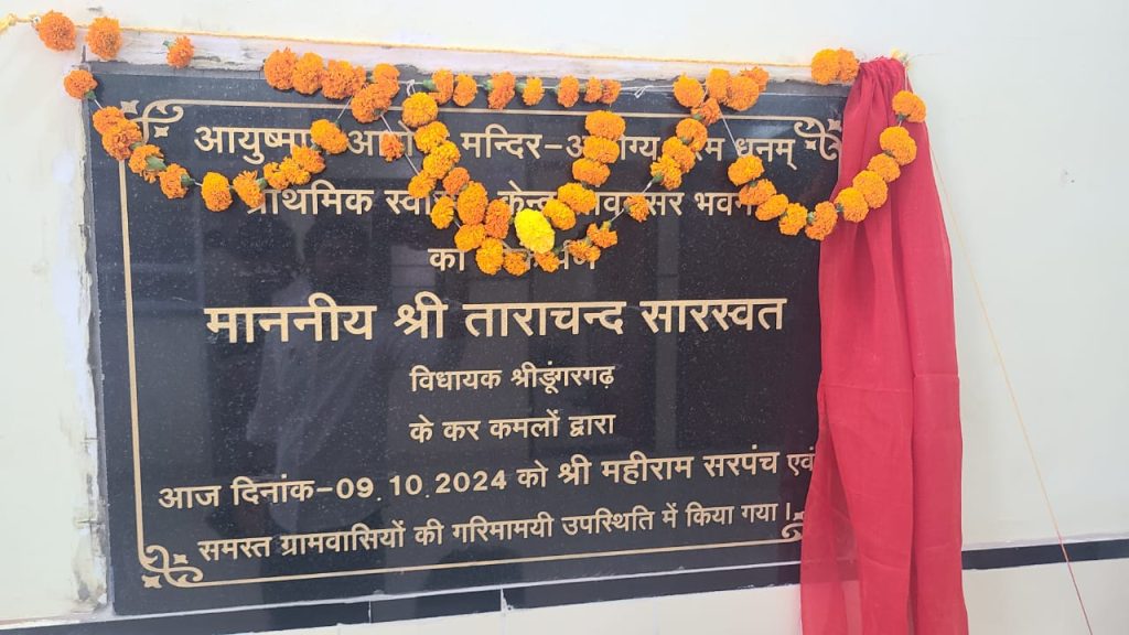 विधायक ताराचंद सारस्वत ने श्रीडूंगरगढ़ के प्राथमिक स्वास्थ्य केंद्र सावतसर के नव-निर्मित भवन का उद्घाटन किया। उद्घाटन के दौरान विधायक ने लाभार्थियों को निःशुल्क सोनोग्राफी के लिए ‘मा वाउचर’ का वितरण भी किया। विधायक सारस्वत ने इस मौके पर क्षेत्र के लोगों से अपील की कि वे सरकारी स्वास्थ्य सेवाओं का पूरा लाभ उठाएं और अपने स्वास्थ्य का ध्यान रखे।
