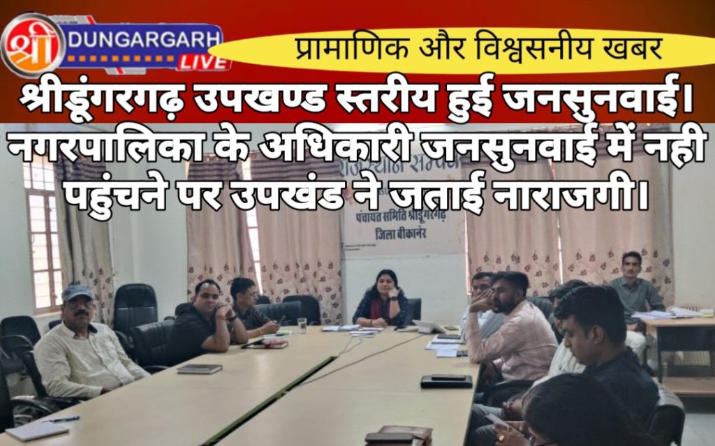आज उपखंड स्तरीय जनसुनवाई का आयोजन किया गया जिसमें बिजली पानी के मुद्दों पर जनसुनवाई हुई इस दौरान सभी विभागों के अधिकारी जनसुनवाई में पहुंचे। नगर पालिका के अधिकारी के जनसुनवाई में नहीं पहुंचने पर उपखंड अधिकारी द्वारा नाराज की जताई गई उन्होंने कहा कि पिछली बार भी जनसुनवाई में स्पष्ट निर्देश दिए गए थे कि शहर में मौसमी बीमारियों को देखते हुए वह फॉगिंग अभियान चलाए ताकि मच्छर ना पनपे और मौसमी जनित बीमारियों पर अंकुश लगाया जा सके लेकिन आदेश के इतने दिनों बाद भी नगरपालिका द्वारा कदम नहीं उठाने पर उन्होंने अपनी नाराजगी जताई। उपखंड अधिकारी श्रीमती उमा मित्तल ने सभी अधिकारियों को निर्देशित किया कि वह बिजली पानी और स्वास्थ्य के मुद्दे को लेकर पूरी तरह से सतर्क रहे और समय-समय पर समस्याओं का समाधान करते रहे नगर पालिका अधिशासी अधिकारी द्वारा लगातार दूसरी बार भी मीटिंग अटेंड नहीं करना और जूनियर कर्मचारियों को मीटिंग में भेजने पर भी उन्होंने नाराजगी जताई। धीरेदेशर चोटिया गांव में चल रहे शराब ठेके को लेकर ग्रामीणों का प्रतिनिधिमंडल सामाजिक कार्यकर्ता श्याम सुंदर आर्य के नेतृत्व में अधिकारियों से मिला और वोटिंग करवाने की मांग की गई ।आर्य ने आरोप लगाया की सरकार जबरन उन पर शराब ठेके को थोप रही है जबकि ग्रामीण नहीं चाहते कि यहां पर शराब ठेका रहे। वहीं शराब ठेके पर अनुज्ञाधारी का नाम लाइसेंस नंबर नहीं लिखा होने पर उन्होंने आशंका जाहिर की है की यह पूरी तरह से फर्जी तरीके से चल रहा है। वहीं बिजली पेयजल को लेकर उन्होंने अधिकारियों को निर्देशित किया की समय रहते वो कार्रवाई करें। इस दौरान जोधपुर डिस्कॉम, जन स्वास्थ्य अभियांत्रिकी विभाग, स्वास्थ्य विभाग, पीडब्ल्यूडी ,वन विभाग सहित तमाम विभागों के अधिकारी कर्मचारी मौजूद रहे।