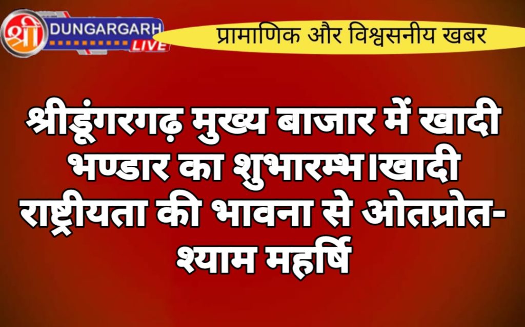 खादी ग्रामोद्योग विकास समिति श्रीडूंगरगढ़ के मुख्य बाजार में बाल भारती स्कूल के पास नवीन खादी भण्डार का शुभारम्भ वरिष्ट साहित्यकार श्याम महर्षि, शेखावाटी खादी ग्रामोद्योग संघ के मंत्री रिछपाल सिंह किरोड़ीवाल एवं शहर के मौजिज लोगों द्वारा फीता काटकर किया गया । इस अवसर पर श्याम महर्षि ने कहा कि खादी शुरू से ही राष्ट्रीयता की भावना से ओतप्रोत रही है । हमारी यह संस्था खादी के गुणवत्तापूर्ण मूल्यों एवं विचारों की सार्थकता हेतु आज भी सतत प्रयत्नशील है । मुख्य अतिथि रिछपाल सिंह किरोड़ीवाल ने कहा कि गांधी के स्वावलंबन एवं स्वरोजगार सिद्धांतो को आगे बढ़ाने में खादी का बड़ा योगदान रहा । खादी जगत में खादी ग्रामोद्योग विकास समिति श्रीडूंगरगढ़ द्वारा आमजन को उपलब्ध करवाई जा रही गुणवत्तापूर्ण वस्तुएं, रोजगार के अवसर, रचनात्मक कार्य अपनी अलग छाप छोड़ रहे है । संस्था के मंत्री ओमप्रकाश शर्मा ने सभी का आभार व्यक्त करते हुए कहा कि हमारा प्रयास है कि आमजन को उच्च गुणवत्ता का कपड़ा, खादय वस्तुएं, फर्नीचर, दैनिक घरेलू उपयोग की वस्तुएं कम दर पर उपलब्ध हो । अभी प्रदेश में निर्मित वस्तुए 50 प्रतिशत छूट के साथ दे रहे है । इस अवसर पर एडवोकेट श्याम सुन्दर आर्य, समाजसेवी श्रीगोपाल राठी, भंवरलाल भोजक, रामचन्द्र राठी, छात्रावास अधीक्षक श्रवण कुमार भाम्भू, कानाराम तरड़, कांग्रेस नेता विमल भाटी, जैसाराम मेघवाल, रतनसिंह राजोतिया, शुभकरण पारीक, विशाल स्वामी, नारायण सारस्वत, हरिराम सारण, गिरधारीलाल जाखड़, रामकिशन गावड़िया, भंवरलाल जाखड़ सहित शहर के मौजिज लोग मौजूद रहे । कार्यक्रम का संयोजन सुशील सेरडिया ने किया ।