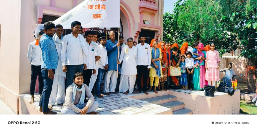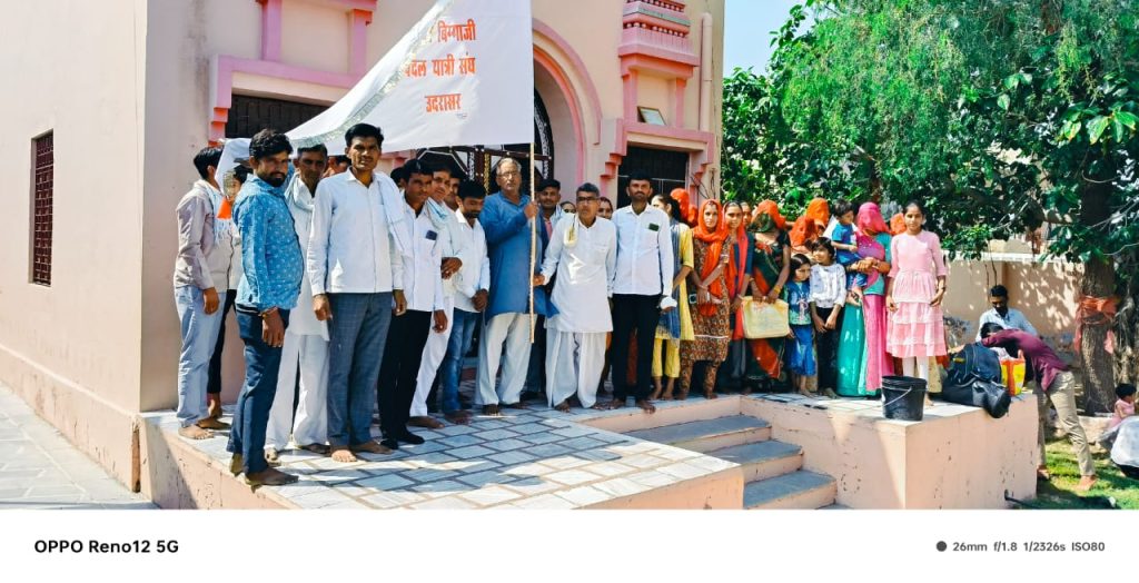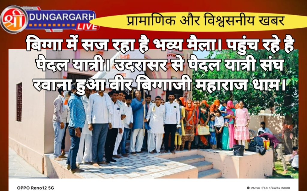 श्रीडूंगरगढ़ वीर बिग्गाजी महाराज का मेला सज रहा है पैदल यात्री बिग्गाजी महाराज के जयकारों के साथ रवाना हुवे है गांव उदरासर से आज सुबह बालाजी महाराज का संघ रवाना हुआ और दोपहर एक बजे बालाजी महाराज मंदिर से वीर बिग्गाजी महाराज बिग्गा धाम आज के लिए भी संघ रवाना हुआ ओमप्रकाश जाखड़ ने बताया कि हर वर्ष की भांति इस बार भी बिग्गाजी महाराज का पैदल यात्री संघ आज बाबा के जयकारों लागते हुवे रवाना हुआ । संघ में बुजुर्ग, महिलाएं बच्चे सभी महाराज के दर्शन के लिए आज पैदल रवाना हुवे इसमें ओम प्रकाश जाखड़ ,प्रमा राम जाखड़ ,सोहन राम, पेमाराम, शीशपाल विनोद, रामलाल ,महावीर, राजूराम आदि रवाना हुवे।