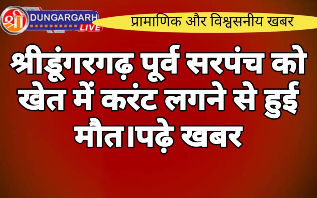 उपखंड में लगातार करंट लगने से लगने की घटनाएं बढ़ती जा रही है। जाखासर नया के पूर्व सरपंच गुलाब सिंह को खेत मे कृषि कार्य करते समय बूस्टर से करंट लग गया तो परिजन उनको श्री डूंगरगढ़ उप जिला अस्पताल लेकर पहुंचे। जहां डॉक्टर ने उन्हें मृत घोषित कर दिया घटना की जानकारी मिलने पर श्रीडूंगरगढ़ पुलिस के हेड कांस्टेबल लक्ष्मण नेहरा 112 टीम के साथ अस्पताल पहुंचे हैं और मृतक के शव को मोर्चरी में रखवाया जा रहा है।