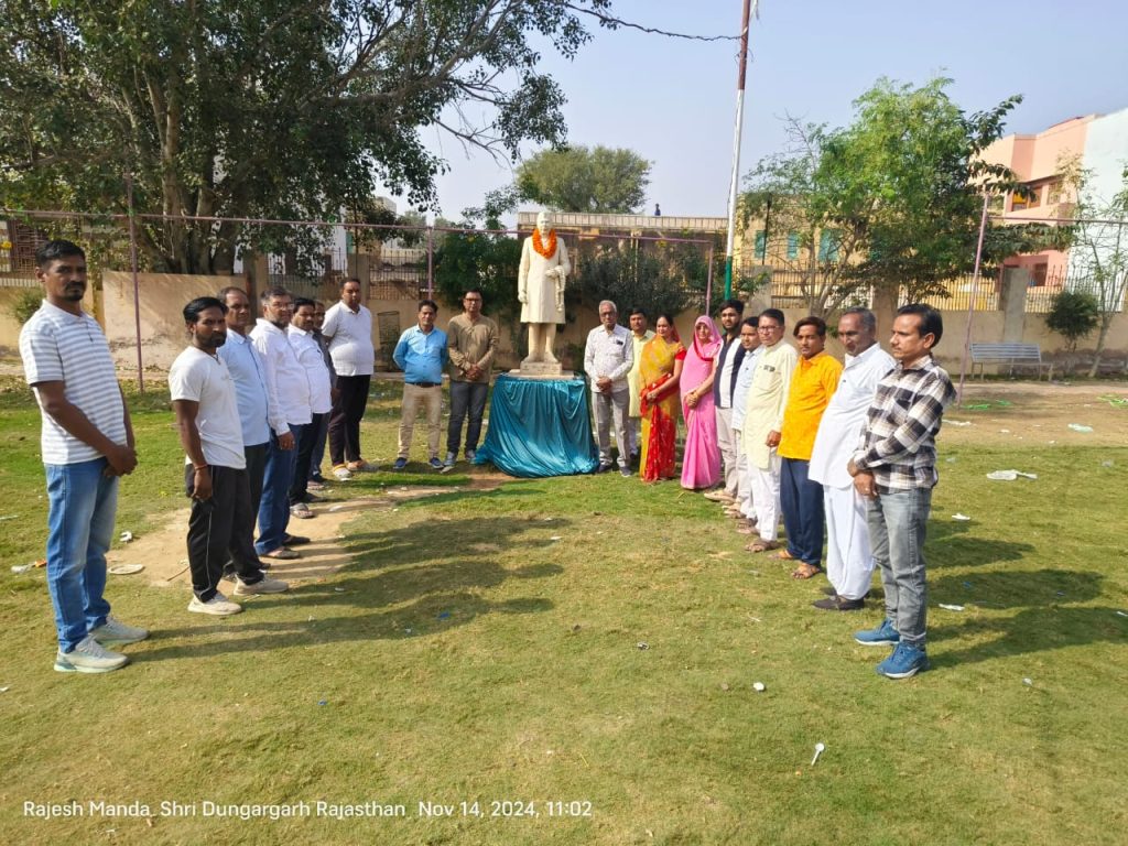 आधुनिक भारत के निर्माता,देश के प्रथम प्रधानमंत्री स्वर्गीय पंडित जवाहर लाल नेहरू जी की जयंती पर नेहरू पार्क कालुबास में प्रधान सावित्री देवी गोदारा के नेतृत्व में नेहरूजी की प्रतिमा के समक्ष उनके सिद्धान्तों को याद कर उनका माल्यार्पण किया गया।इस दौरान नगरपालिका नेता प्रतिपक्ष अंजू देवी पारख, विमल भाटी, कन्हैया लाल सोमानी,मनोज पारख,प्रहलाद सोनी,रमेश प्रजापत,हीरालाल मेघवाल,प्रकाश दुसाद,प्रदीप पुरोहित,नागर मल सारस्वत,नानूराम मेघवाल,राजेश मंडा,रमेश व्यास बाबूलाल नाई, आनन्द वाल्मीकि,महेश आसोपा,राकेश सिद्ध,सहित अन्य कार्यकर्ता उपस्थित रहे