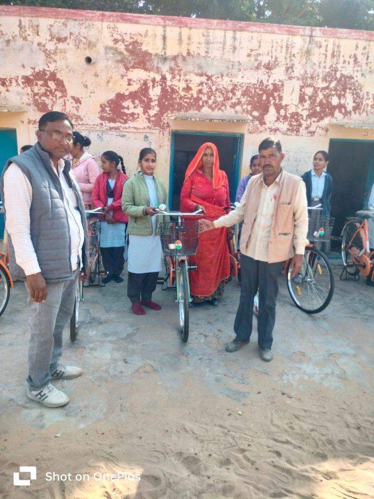 क्षेत्र के राउमावि सातलेरा में मुख्यमंत्री निःशुल्क साईकिल वितरण योजना के अंतर्गत कक्षा 09 की बालिकाओं को निशुल्क साईकिलें वितरित की गई।विद्यालय में एस डी एम सी सचिव मुकेश कुमार शर्मा ने जानकारी देते हुए बताया कि आज साईकिल वितरण कार्यक्रम में जैसलसर सरपंच रामप्यारी देवी जाखड़, एस डी एम सी सदस्य बजरंगलाल तावणियाँ और विद्यालय के प्राचार्य नौरत मल सारस्वत उपस्थित रहे।कक्षाध्यापक लल्लू राम मीणा ने जानकारी दी कि विद्यालय में वर्तमान सत्र 2024-25 में कक्षा 09 में अध्ययनरत कुल 13 बालिकाओं को निःशुल्क साईकिलें अतिथियों के करकमलों से वितरित की गई।इस अवसर पर विद्यालय में लाभकारी योजना प्रभारी अमरचंद जाखड़ ने राज्य सरकार की शिक्षा विभाग में संचालित लोककल्याणकारी योजनाओं की जानकारी विद्यार्थियों को प्रदान की।नुजल काजी ने कार्यक्रम का सफल संयोजन किया।विद्यालय स्टॉफ सुरेश हर्षवाल,नीलम कँवर,पुष्पा, सुमम कुमारी,वन्दना मिश्रा और अनुराधा ने उक्त साईकिल वितरण कार्यक्रम में अमूल्य सहयोग दिया।