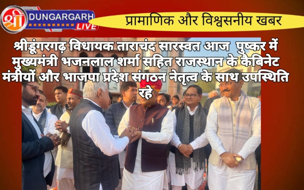 क्षेत्रीय विधायक ताराचंद सारस्वत आज दिन भर पुष्कर में राजस्थान के पूर्व संगठन महामंत्री व तेलंगाना के भाजपा प्रदेश महामंत्री (संगठन) की पूज्यनीय माताजी के पूजन, गीता पाठ व श्रद्धा सुमन अर्पण कार्यक्रम में शामिल हुए । इस दौरान पुष्कर में राजस्थान के मुख्यमंत्री भजनलाल शर्मा, क्षेत्रीय प्रचारक निंबाराम जी भाई साहब,उप मुख्यमंत्री श्रीमती दिया कुमारी, उपमुख्यमंत्री श्री प्रेमचंद बैरवा सहित पार्टी के वरिष्ठजन उपस्थित थे जिनसे क्षेत्रीय विधायक ने शिष्टाचार मुलाकात की ।