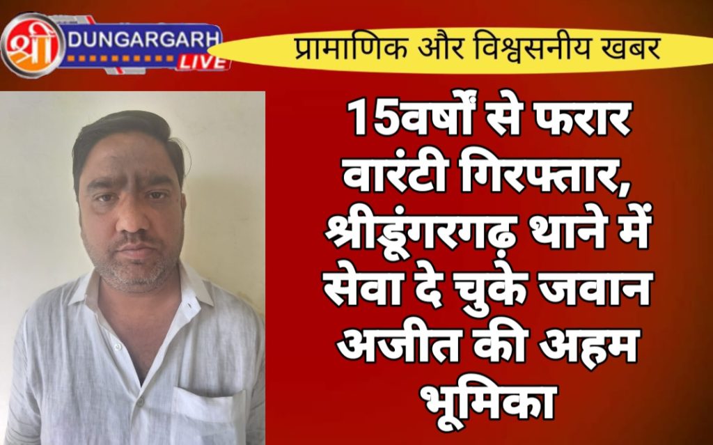 श्रीडूंगरगढ़। बीकानेर पुलिस ने 15वर्षों से फरार स्थायी वारंटी हरीश श्रीवास्तव को मुम्बई से गिरफ्तार किया है। पुलिस सूत्रों के अनुसार आईजी ओमप्रकाश व एसपी कावेंद्र सिंह के निर्देशन में एएसपी सौरभ तिवाड़ी व सीओ विशाल जांगिड़ के सुपरविजन में सदर थानाधिकारी कुलदीप सिंह द्वारा एक टीम का गठन किया गया। इस टीम में श्रीडूंगरगढ़ पुलिस थाने में अपनी सेवाएं दे चुके अजीत कुमार के साथ कॉन्स्टेबल गिरधर दान, साइबर से एएसआई दीपक यादव भी शामिल थे। टीम द्वारा भगौड़े के विरुद्ध सूचना संकलन की गई और मुम्बई से वारण्टी हरीश श्रीवास्तव पुत्र कांता प्रसाद को गिरफ्तार किया।