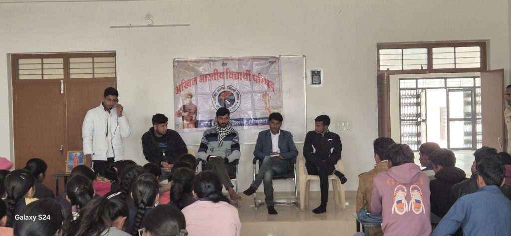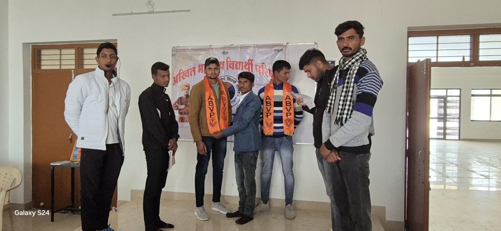 नगर सहमंत्री रामकरण जी ने अपने विचार रखे किशन शर्मा ने विद्यार्थी परिषद के इतिहास और आज के समय में उसकी प्रासंगिकता के बारे में बताया। रणजीत बावरी ने कहा संगठन ही सर्वोपरि है नगर मंत्री लालचन्द मेघवाल ने कॉलेज इकाई की घोषणा इस प्रकार की गई कृष्णा प्रजापत को इकाई अध्यक्ष का दायित्व दिया गया, पुष्पेंद्र यादव को इकाई उपाध्यक्ष, पलक भाटी को उपाध्यक्ष, सीता बोरा को उपाध्यक्ष, आईना मेघवाल को उपाध्यक्ष ,दानाराम मेघवाल को इकाई सचिव, विजयलक्ष्मी नाई को सह सचिव, बाबूलाल कुलहरी को सह सचिव, जगदीश प्रजापत को सहसचिव, नेतराम गोदारा को महाविद्यालय सोशल मीडिया संयोजक, पंकज शर्मा को सह संयोजक, माया शर्मा को महाविद्यालय प्रमुख, धन्नी को कला संकाय प्रमुख, सुशीला मेघवाल को विज्ञान संकाय प्रमुख, नैना राजपूत को वाणिज्य संकाय प्रमुख ,श्रवण प्रजापत को स्वाध्याय मंडल प्रमुख, हरिओम प्रजापत को इकाई SFD संयोजक लालचंद मेघवाल को सहसंयोजक, सरोज जितेंद्र कमलिया को इकाई एस एफ एस संयोजक, सुनील प्रजापत को सदस्य , संयोजक अंकित सुथार सहसंयोजक ,पूजा मेघवाल को सदस्य, सुमन शर्मा सदस्य, श्रृंखला शर्मा इकाई खेल संयोजक, नितेश शर्मा महाविद्यालय कार्यकारिणी सदस्य नियुक्त किए गए और जय श्री सुथार को इकाई कला मंच संयोजक बनाया गया।