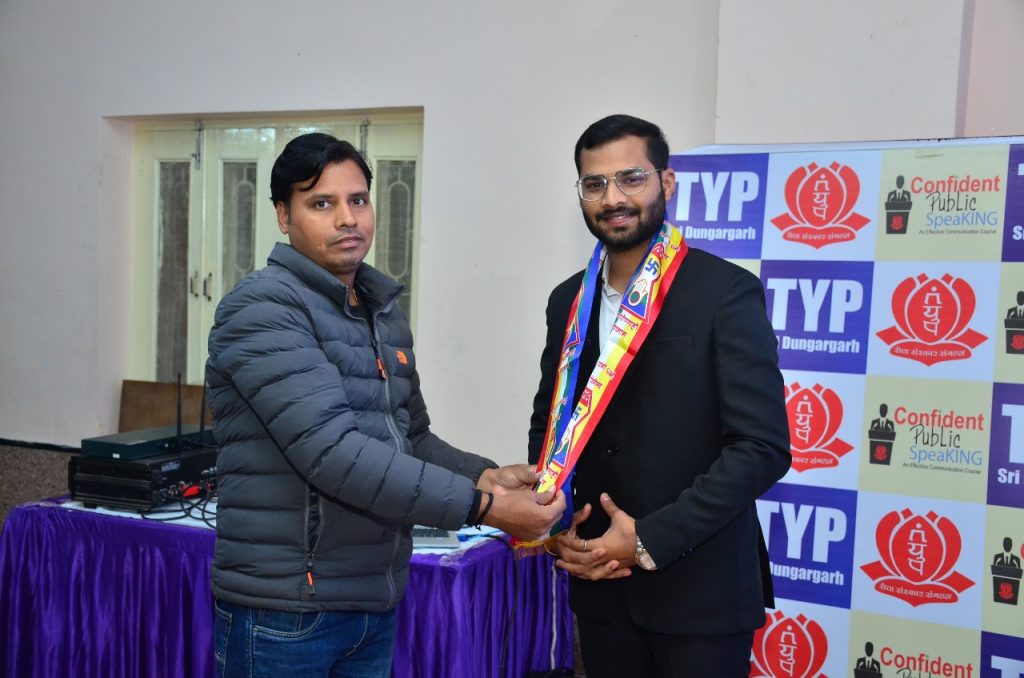 अखिल भारतीय तेरापंथ युवक परिषद के निर्देशन में तेरापंथ युवक परिषद, श्रीडूंगरगढ़ के तत्वाधान में कॉन्फिडेंट पब्लिक स्पीकिंग कार्यशाला शुरुआत तेयुप साथियों के मंगलाचरण विजय गीत के संगान हुई। अध्यक्ष मनीष जी नौलखा ने कार्यशाला के ट्रेनर सुजल जी बोहरा, श्रीडूंगरगढ़ की प्रथम सीपीएस जोनल ट्रेनर अंबिका जी डागा एंव सभी कार्यशाला संभागीयों का स्वागत किया।उपाध्यक्ष दीपक जी छाजेड़ मंत्री अमित जी बोथरा ने जैन दुपट्टा से कार्यशाला के ट्रेनर सुजल जी बोहरा का सम्मान किया। कार्यक्रम का संचालन पूर्व अध्यक्ष प्रदीप जी पुगलिया ने किया।कार्यक्रम में तेरापंथ युवक परिषद के पदाधिकारी गण एवं सदस्यगण मौजूद रहे।