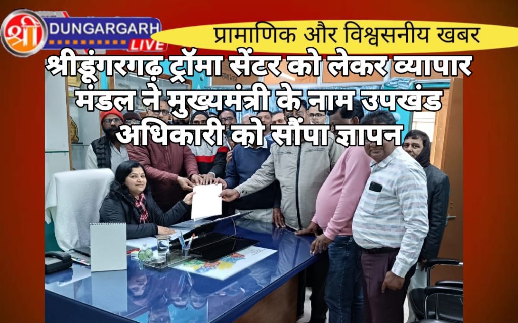श्रीडूंगरगढ़ में ट्रॉमा सेंटर के शीघ्र निर्माण की मांग को लेकर व्यापार मंडल ने रोष प्रकट किया और मुख्यमंत्री के नाम ज्ञापन सौंपा।व्यापार मंडल अध्यक्ष श्याम सुंदर पारीक, महामंत्री संजय करनाणी, उपाध्यक्ष सुशील डागा, कोषाध्यक्ष चैनरूप दुगड़ सहित अनेक व्यापारियों ने दोपहर को नारेबाजी कर ट्रॉमा सेंटर निर्माण की आवश्यकता पर जोर दिया। मंडल अध्यक्ष पारीक ने कहा कि चिकित्सा विभाग के नॉर्म्स के अनुसार दानदाता परिवार से हुए एमओयू के तहत ट्रॉमा सेंटर और उपजिला अस्पताल का निर्माण तुरंत शुरू किया जाए। यदि दानदाता परिवार असमर्थता जताता है, तो यह कार्य राजकोष से शीघ्र आरंभ हो।