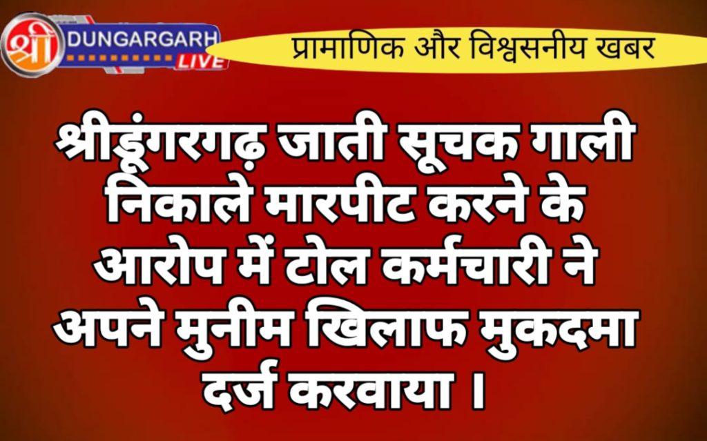 टोल प्लाजा पर वाहन चालक व टोल कर्मियों के बीच लड़ाई झगड़े की तो खबरें ज्यादातर आती रहती है लेकिन इस बार टोल प्लाजा के कर्मचारियों के बीच आपसी लड़ाई की भी घटना सामने आई है। स्टेट हाईवे आड़सर टोल प्लाजा पर कार्यरत कर्मचारी अभयराज मेघवाल ने साथ ही काम करने वाले मुनीम धनराज सिंह के खिलाफ मारपीट करने गाली गलौज करके जाति सूचक गालियां निकालने का आरोप लगाकर पुलिस थाने में मुकदमा दर्ज करवाया है। पीड़ित ने आरोप लगाया कि मुनीम द्वारा कंप्यूटर से कुछ डिटेल मांगा गया था जिस पर उसने कहा कि मैं खाना खाकर डिटेल निकाल दूंगा लेकिन ऑफिस में आकर आरोपी ने गाली गलौज करते हुए कंप्यूटर में छेड़खानी की और उसके साथ गाली गलौज करते हुए मारपीट की पुलिस ने पीड़ित की शिकायत पर मुकदमा दर्ज कर लिया है और मामले की जांच लूणकरणसर पुलिस उप अधीक्षक नरेंद्र पूनिया को सौंपी गई है।