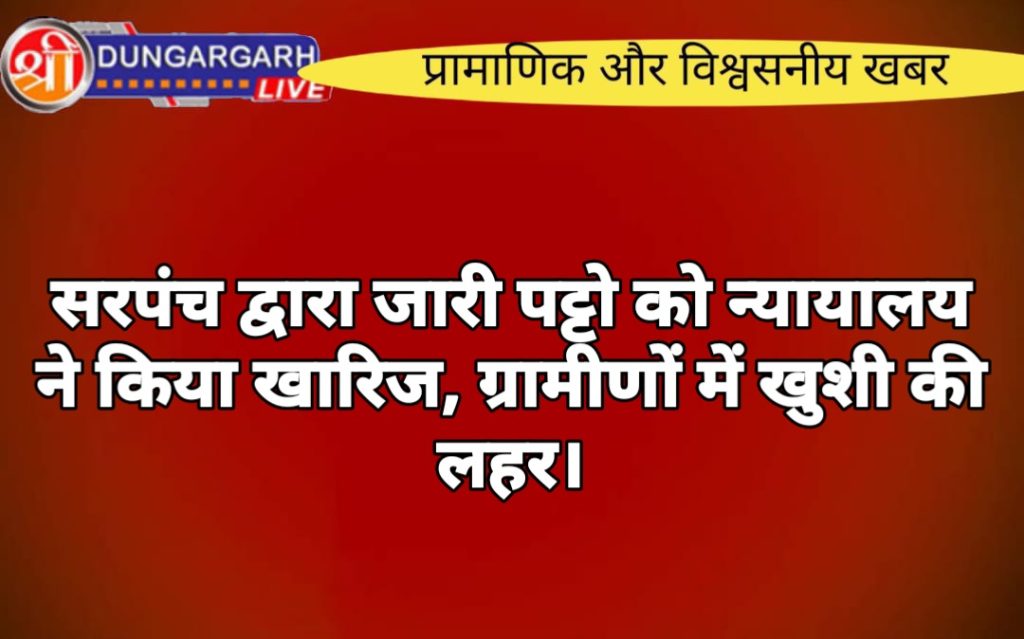 श्रीडूंगरगढ़ के मोमासर गांव में पुर्व सरपंच स्व. रामूराम गोदारा द्वारा नियम विरुद्ध जारी किए गए पट्टों को न्यायालय अतिरिक्त जिला कलेक्टर दुलीचन्द मीणा ने निरस्त कर दिए है। प्रार्थी दानाराम जाट एवं भंवरलाल जाट ने बताया कि पूर्व सरपंच रामूराम गोदारा ने अपने परिजनो एवं नजदीकी लोगों को पंचायत राज अधिनियम एवं कानून के विपरीत 19 लोगों को व्यवसायिक भूमि को रिहाहसी भूमि मानते हुए उनके पुराने कुब्जे मानकर बिना आपति एवं बिना नोटिस ही ये पट्टे जारी कर दिए। उन्होंने बताया कि जिस भूमि को नियमो को ताक पर रखकर पट्टे जारी किए गए थे जो कि मुख्य बाजार की करोड़ो रुपयों की भूमि है। जिन्हें कौड़ियों के भाव पर दे दिया गया। उन्होंने बताया कि ये सभी पट्टे की पत्रावली एक ही दिन में कम्प्यूटर से तैयार किये गए थे जिनमें सिर्फ पट्टाधारक का नाम एवं दिनांक हाथ से लिखे गए थे। पत्रावली में भी कई कॉलम खाली पड़े है।