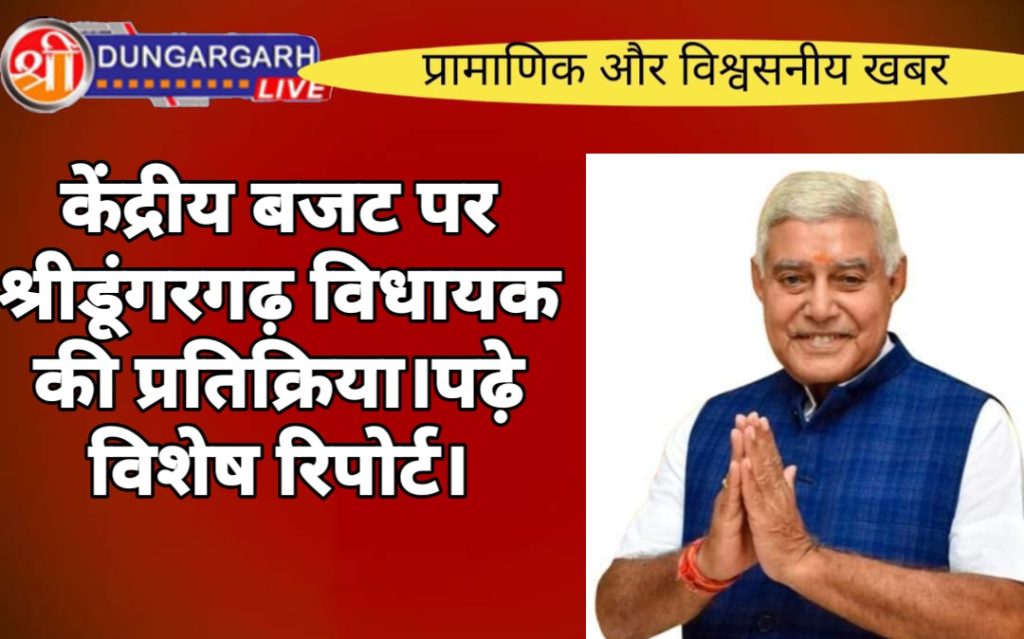 श्री डूंगरगढ़ विधायक ताराचंद सारस्वत ने केंद्रीय बजट पर प्रतिक्रिया व्यक्त करते हुए कहा कि आज केंद्र सरकार का बजट केंद्रीय वित्त मंत्री श्रीमती सीतारमण ने पेश किया निश्चित रूप से दूरगामी सोच के साथ बनाया गया स्वागत योग्य बजट है ।इस बजट में सभी वर्गों को ध्यान में रखकर गरीब कल्याण, महिलाओं, अन्नदाता किसानों, आदिवासियों, मध्यम वर्गीय कर्मचारियों, चतुर्थ श्रेणी कर्मचारी सहित व्यापारियों सहित सबकी मूलभूत आवश्यकताओं को ध्यान में रखकर पेश किया गया बजट है। बजट में देश के आधारभूत संरचना को मजबूती देने के साथ स्वास्थ्य, पोषण, शिक्षा, गरीब कल्याण, कृषि, जल संसाधन, वित्तीय समावेश, कोशल विकास , वरिष्ठ नागरिक, समेत मध्यम वर्ग का पूरा ध्यान रखा गया है।किसानों के लिए धनधान्य योजना व किसान क्रेडिट कार्ड की लिमिट बढ़ाने से किसानों को लाभ मिलेगा। बजट में टूरिज्म को बढ़ावा देने संबंधी प्रावधान रखे गए हैं जिसका अधिकतम लाभ राजस्थान को मिलने वाला है।गृह और रक्षा क्षेत्र में अभूतपूर्व प्रयास किया गया है जो निश्चित रूप से सराहनीय योग्य है।दूरगामी विचारधारा के साथ पेश किए गए इस बजट की जितनी सराहना की जाए उतनी कम है।मैं इस बजट को स्वागत योग्य मानते हुवे प्रशंसा करता हूं। भाजपा नेता कुंभनाथ सिद्ध ने बताया कि केंद्र सरकार ने अपने तीसरी बार लगातार बजट पेश करते हुए किसानों ,व्यापारी और मध्यम वर्ग के लिए विशेष ध्यान रखा गया हैकिसान क्रेडिट कार्ड के ऋण की राशि तीन लाख रुपये से बढ़कर पाँच लाख रुपये की हैशिक्षा पर विशेष ध्यान दिया गया है आई आई टी की 6500सीटे बढ़ाने की घोषणा की हैकेन्सर की दवाई की रेट कम करके गरीब लोगों को बीमारी में आर्थिक राहत दी है