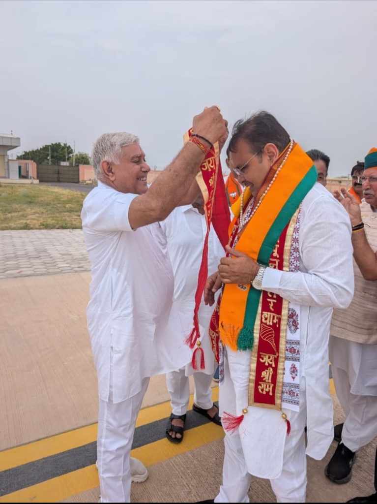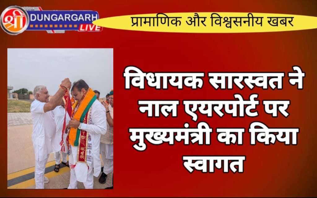 श्री डूंगरगढ़ विधायक श्री ताराचंद सारस्वत ने आज नाल एयरपोर्ट, बीकानेर पर राजस्थान के मुख्यमंत्री श्री भजनलाल शर्मा का आत्मीय स्वागत किया। मुख्यमंत्री श्री शर्मा के बीकानेर आगमन पर विधायक सारस्वत ने पुष्पगुच्छ भेंट व दुपट्टा पहनाकर उनका अभिनंदन किया और क्षेत्रवासियों की ओर से शुभकामनाएं प्रेषित कीं।