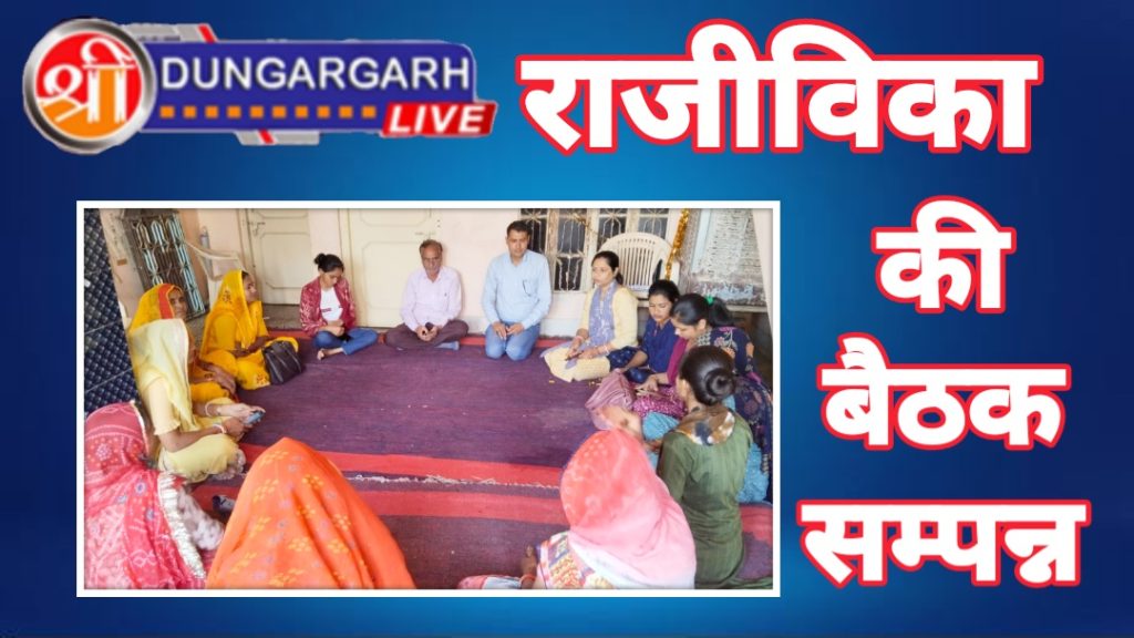 श्रीडूंगरगढ़ लाइव…9 मार्च 2023। श्रीडूंगरगढ़ में महिला दिवस पर जागरूकता मीटिंग का आयोजन राजीविका कार्यालय में किया गया जिसमें बेटी बचाओ बेटी पढ़ाओ राजीविका महिला सर्वांगीण विकास सहकारी समिति की सचिव विद्या ने महिलाओं की आजीविका बढ़ाने के बारे में बताया।जलदाय विभाग के सहायक अभियंता बृजमोहन मुंड ने सरकारी योजना में जमा बचत हेतु स्वयं सहायता समूह की महिलाओं को प्रेरित किया।मीटिंग में उपस्थित जिला प्रबंधक वित्तीय प्रवीण चौधरी ने महिलाओं को आजीविका बढ़ाने के लिए वित्तीय गतिविधियां तेज़ करने के लिए प्रेरित किया।मीटिंग में कलेक्टर प्रबंधक मोनिका सारण,डाटा ऑपरेटर ममता शर्मा पशुधन सहायक सहीराम बाना,मुनि राम जाखड़ ने पशुपालन के संबंध में जानकारी दी।