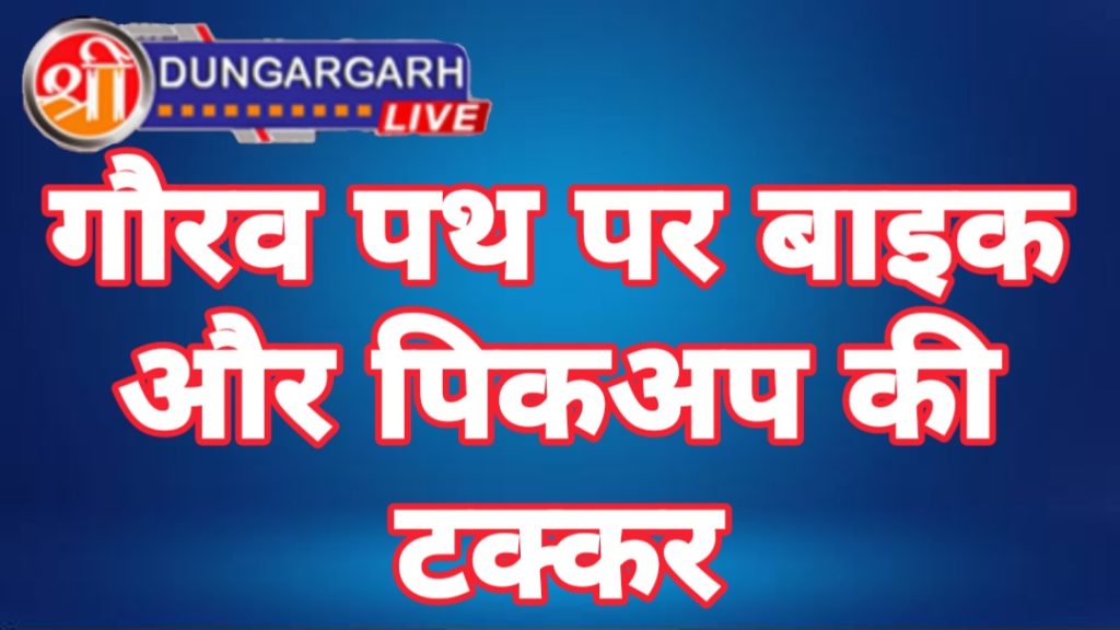 श्रीडूंगरगढ़ लाइव…12 मार्च 2023।अभी अभी गौरव पथ पर एक मोटरसाइकिल और पिकअप की टक्कर हो गयी। मोटरसाइकिल चालक कालुबास निवासी ईशरराम के हल्की चोटे आयी। आसपास के दुकानदारों एवं राहगीरों ने बाइक चालक को संभाला और ठीक होने पर घर रवाना किया।