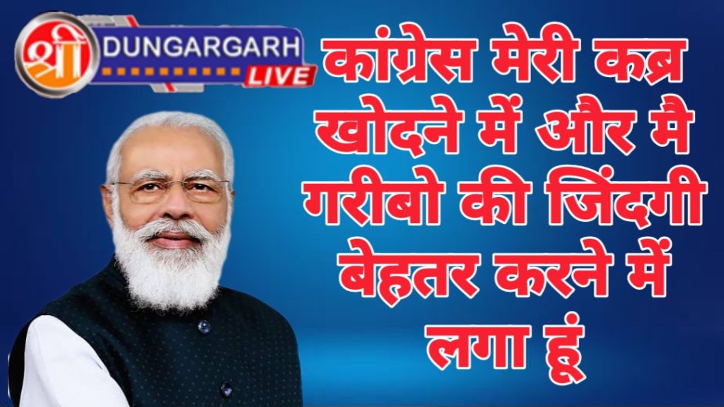 उन्होंने कहा कि कांग्रेस के जो लोग मोदी की कब्र खोदने का ख्वाब देख रहे हैं उन्हें यह नहीं पता कि करोड़ों माताओं, बहनों, बेटियों और लोगों की दुआएं मोदी के लिए सबसे बड़ा सुरक्षा कवच है।मोदी ने कहा कि 2014 से पहले ‘‘केंद्र में एक गठबंधन सरकार विभिन्न प्रकार के लोगों के समर्थन से चल रही थी। उन्होंने दावा किया कि उसने गरीब लोगों और गरीब परिवारों को बर्बाद करने में कोई कोर कसर नहीं छोड़ी।जो पैसा गरीबों के विकास के लिए था, कांग्रेस सरकार ने उसमें से हजारों करोड़ रुपये लूटे।