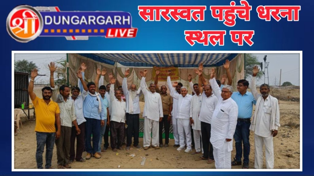 सारस्वत के साथ मंडल अध्यक्ष महावीर प्रजापत,महामंत्री महेश राजोतिया, सुरेन्द्र चुरा,भवानी प्रकाश तावणीयाँ,भगवान सिंह रहे । धरने पर मौजूद मिलें ग्रामवासी छैलू सिंह राजपूत, पेमाराम ,बाबूलाल जाजड़ा, ओम प्रकाश सोनी,नंदलाल नाई, कुशाल सिंह,जेठाराम मेघवाल , प्रताराम नायक,कोझाराम कड़वासरा, पंचायत समिति सदस्य नत्थू सिंह राजपूत,ओम प्रकाश छरंग, तोलाराम महिया,ओम प्रकाश जाजड़ा आदि ग्रामीण धरने पर मौजूद थे ।