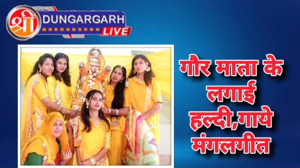 श्रीडूंगरगढ़ लाइव…17 मार्च 2023।राजस्थान के प्रमुख त्यौहारों में से एक गणगौर महोत्सव की हर तरफ धूम मची हुई है।महिलाएं एवं युवतियां इस त्यौहार को बड़े ही हर्षोल्लास से मना रही है। महिलाएं शिव-पार्वती रूपी ईसर और गणगौर की पूजा कर अपने सुखमय जीवन की मंगलकामनाये करती हुई मंगल गीत गा रही है।आज तोलियासर ग्राम में महिलाओं ने गणगौर महोत्सव में हल्दी कार्यक्रम को बड़े ही धूमधाम से मनाया।