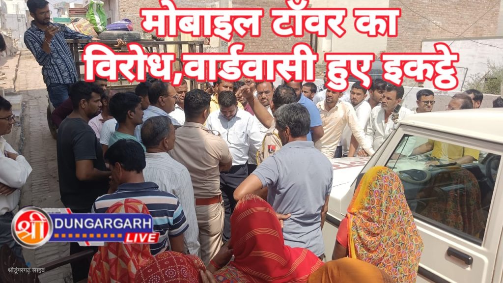 श्रीडूंगरगढ़ लाइव…18 मार्च 2023।श्रीडूंगरगढ़ कालुबास के वार्ड 2 में एक मोबाईल टॉवर लगाने आयी कम्पनी का विरोध मोहल्ले वासियो और पार्षद प्रतिनिधि श्यामसुंदर पुरोहित ने किया।