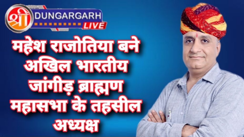 श्रीडूंगरगढ़ लाइव…19 मार्च 2023।श्रीडूंगरगढ़ के वरिष्ठ समाजसेवी, कस्बे की हर सामाजिक गतिविधियों में अग्रणीय सेवादर, भाजपा के शहर महामंत्री महेश राजोतिया को अखिल भारतीय जांगीड़ ब्राह्मण महासभा ने श्रीडूंगरगढ़ के तहसील अध्यक्ष पर नियुक्ति दी हैं।महासभा के जिलाध्यक्ष भंवरलाल जांगीड़ ने बताया कि राजोतिया के सेवाकार्यो को देखते हुए महासभा ने उन्हें तहसील अध्यक्ष बनाया है। समाजहित में कार्य करके महासभा की रीति-नीति को आगे बढ़ाएंगे।आज बीकानेर में प्रदेश सभा की त्रैमासिक बैठक जिला-तहसील सभा का शपथ ग्रहण समारोह रखा गया हैं।बैठक में महासभा के देश-प्रदेश के प्रतिनिधि हिस्सा लेंगे।