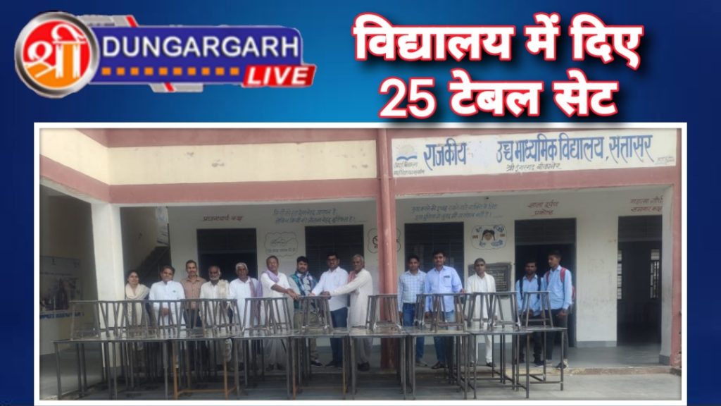 श्रीडूंगरगढ़ लाइव…20 मार्च 2023।जब स्वयं छात्र जीवन मे रहे हो तब हमें छात्रों के अध्ययन में आने वाली समस्याओं का पता रहता है। और अगर खुद उन समस्याओं को हल करने में सक्षम हो जाये तो बिना किसी स्वार्थ के ये कार्य कर देना चाहिए… यही उद्गार आज सत्तासर गांव के समाज सेवी भाजपा नेता विक्रम सिंह पंवार ने राजकीय उच्च माध्यमिक विद्यालय सत्तासर में छात्रों के विद्याध्ययन के लिये 25 टेबल सेट प्रधानाध्यापक सुनील चारण को सप्रेम भेंट किये।शाला परिवार ने पंवार को इस नेक कार्य के लिए धन्यवाद दिया।