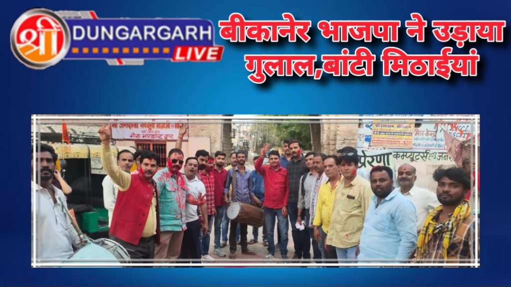 श्रीडूंगरगढ़ लाइव…23 मार्च 2023।आज भाजपा प्रदेश कार्यालय से नये प्रदेशाध्यक्ष की नियुक्ति का समाचार आने के बाद बीकानेर संभाग के भाजपा नेताओं में नए जोश का संचार भर दिया है। चित्तौड़गढ़ के सांसद राजस्थान प्रदेश भाजपा प्रदेशाध्यक्ष सी पी जोशी जी को बनाने पर धर्म नगर द्वार पर जस्सूसर मंडल के कार्यकर्ताओं ने जमकर आतिशबाजी कर,गुलाल लगाया एवं मिठाइयां वितरण की।