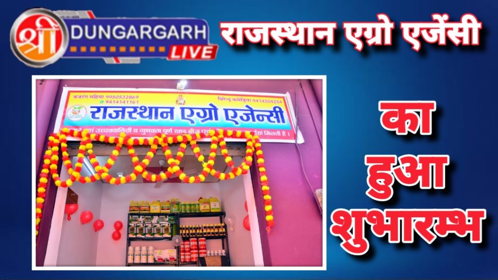 - श्रीडूंगरगढ़ लाइव…6 अप्रेल 2023।श्रीडूंगरगढ़ में हुआ राजस्थान एग्रो एजेंसी का शुभारंभ…