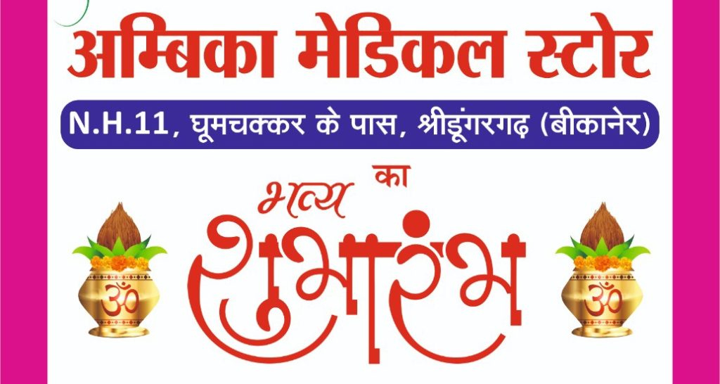 श्रीडूंगरगढ़ लाइव…6 अप्रेल 2023। कस्बे के घूमचक्कर पर अंबिका मेडिकल स्टोर का हुआ। स्टोर के संचालक सुनील सारस्वत और पुनीत ने बताया कि नेशनल हाईवे 11 पर आवागमन बहुतायत से रहता है।