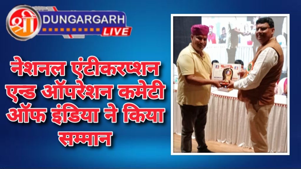 श्रीडूंगरगढ़ लाइव…17 अप्रेल 2023।नेशनल एंटीकरप्शन एन्ड ऑपरेशन कमेटी ऑफ इंडिया द्वारा 16 अप्रेल को महाराष्ट्र के पुणे में सम्मान समारोह आयोजित किया गया।इस समारोह में फाउंडेशन चेयरमैन राजेश शुक्ला,राष्ट्रीय महासचिव जे.एन. मिश्रा ने पूरे देश मे फाउंडेशन के लिये शानदार कार्य करने वाले पदाधिकारियों का सम्मान किया गया।