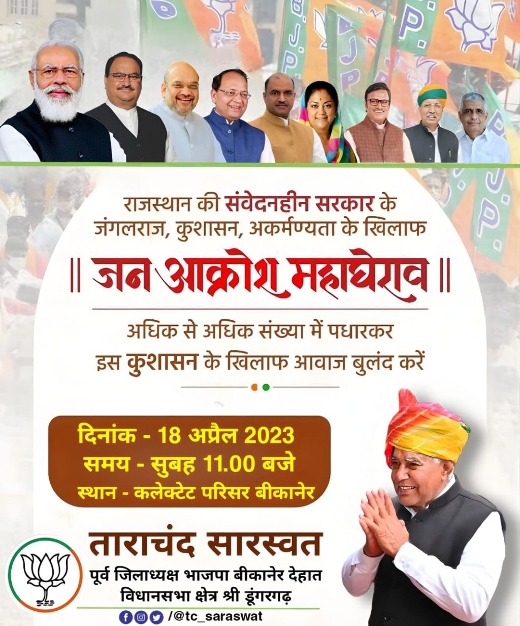 श्रीडूंगरगढ़ लाइव…17 अप्रेल 2023। भाजपा कल करेगी बीकानेर कलेक्ट्रेट का महाघेराव।
