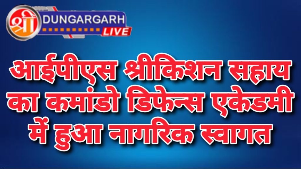 श्रीडूंगरगढ़ लाइव…21 अप्रेल 2023।कमांडो डिफेंस एकेडमी के निदेशक रामकिशन फौजी ने कहा कि बच्चों के सर्वांगीण विकास के लिए जीवन में खेलकूद व शिक्षा का होना बहुत जरूरी है।फौजी ने बताया कि आज दिनांक 21.04.2023 को कमांडो डिफ़ेंस एकेडमी, कीतासर में पुलिस महानिरीक्षक श्री किशन सहाय के पधारने पर भव्य स्वागत किया गया। सरपंच श्री भंवरलाल पुनिया ने साफा पहनाकर व ग्रामीणों ने माला पहनाकर स्वागत किया।