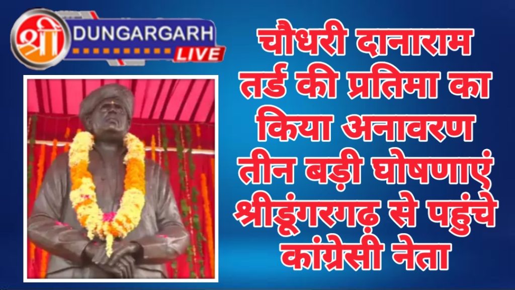श्रीडूंगरगढ़ लाइव…27 अप्रेल 2023।प्रदेश के मुख्यमंत्री अशोक गहलोत कल 26 अप्रेल को बीकानेर जिले के गांव जसरासर पहुंचे और वहां समाजसेवी स्व. चौधरी दानाराम तर्ड की मूर्ति का अनावरण किया।