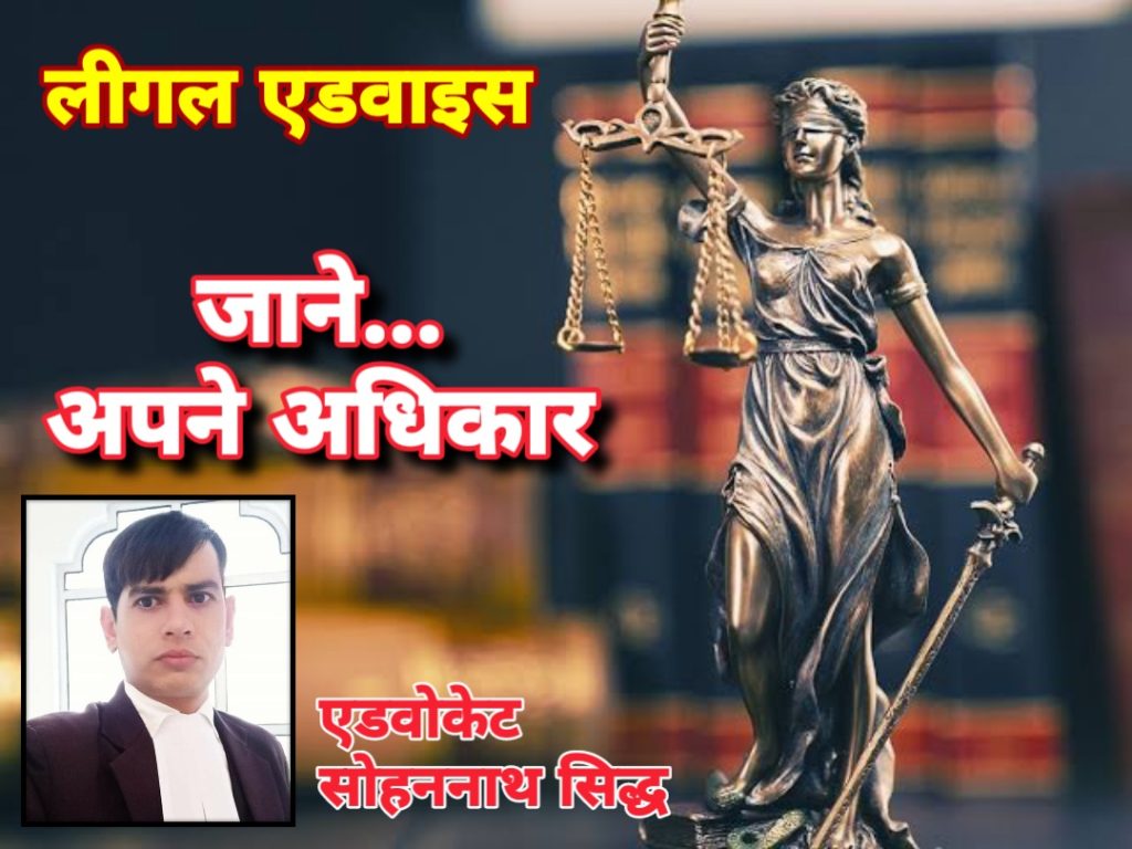 श्रीडूंगरगढ़ लाइव…03 मई 2023।श्रीडूंगरगढ़ लाइव सटीक खबरों के साथ सामाजिक, ऐतिहासिक, स्वास्थ्यपरक कॉलम भी पाठकों के लिए प्रतिदिन प्रकाशित करता है। अब अपने पाठकों के लिए श्रीडूंगरगढ़ लाइव पोर्टल लेकर आया है “लीगल एडवाइज” यानि विधिक सलाह। युवा एडवोकेट सोहन नाथ सिद्ध आपको बताएंगे आपके अधिकारों के बारे में और आपको मिलेगी कानूनी सलाह।